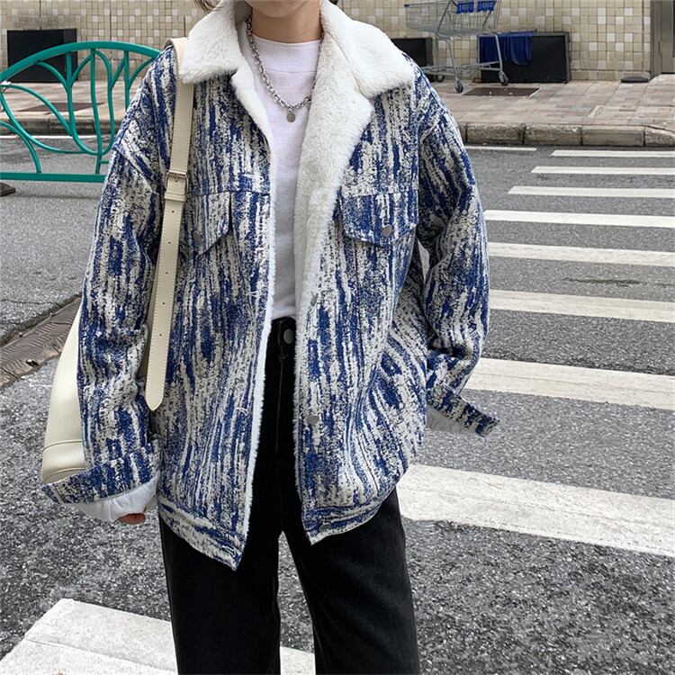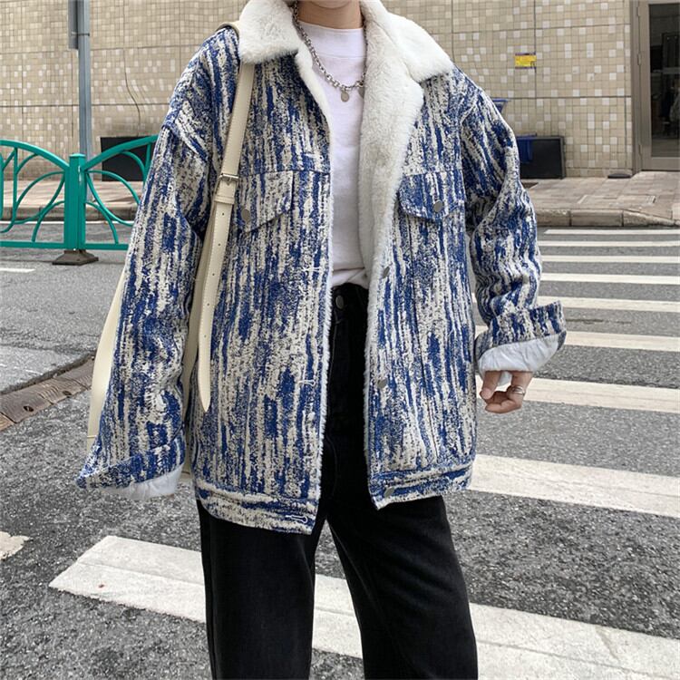 ◎【送料無料】冬 ゆったりする 原宿BF風 うさぎの毛皮 コート レトロ デニムコットンの服