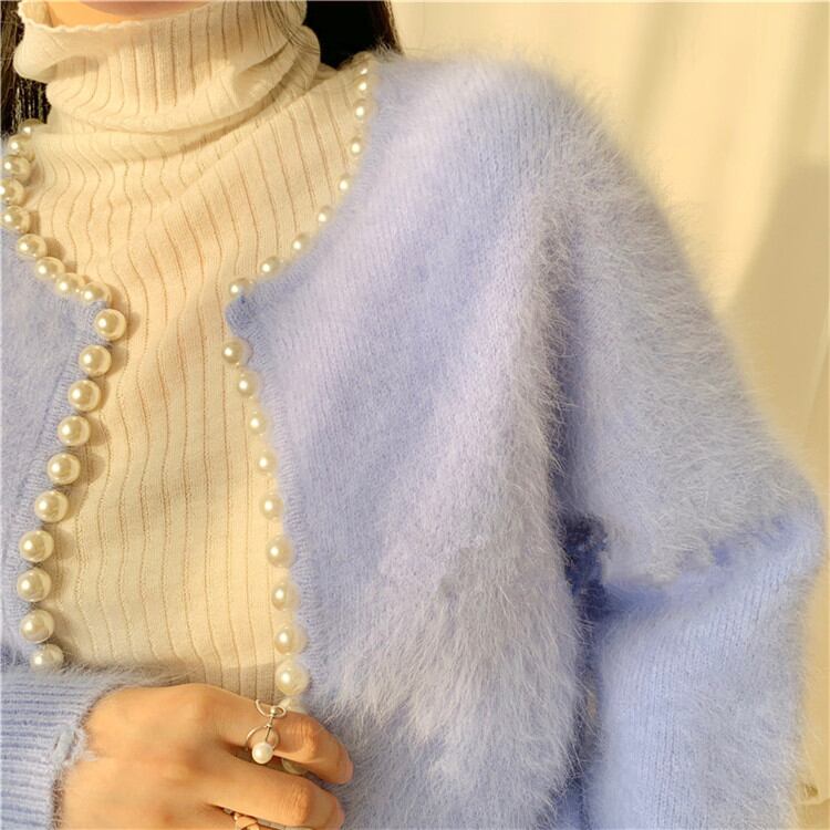 秋冬 アウター パールエッジ ショートコート フェイクファー カーディガン おしゃれ