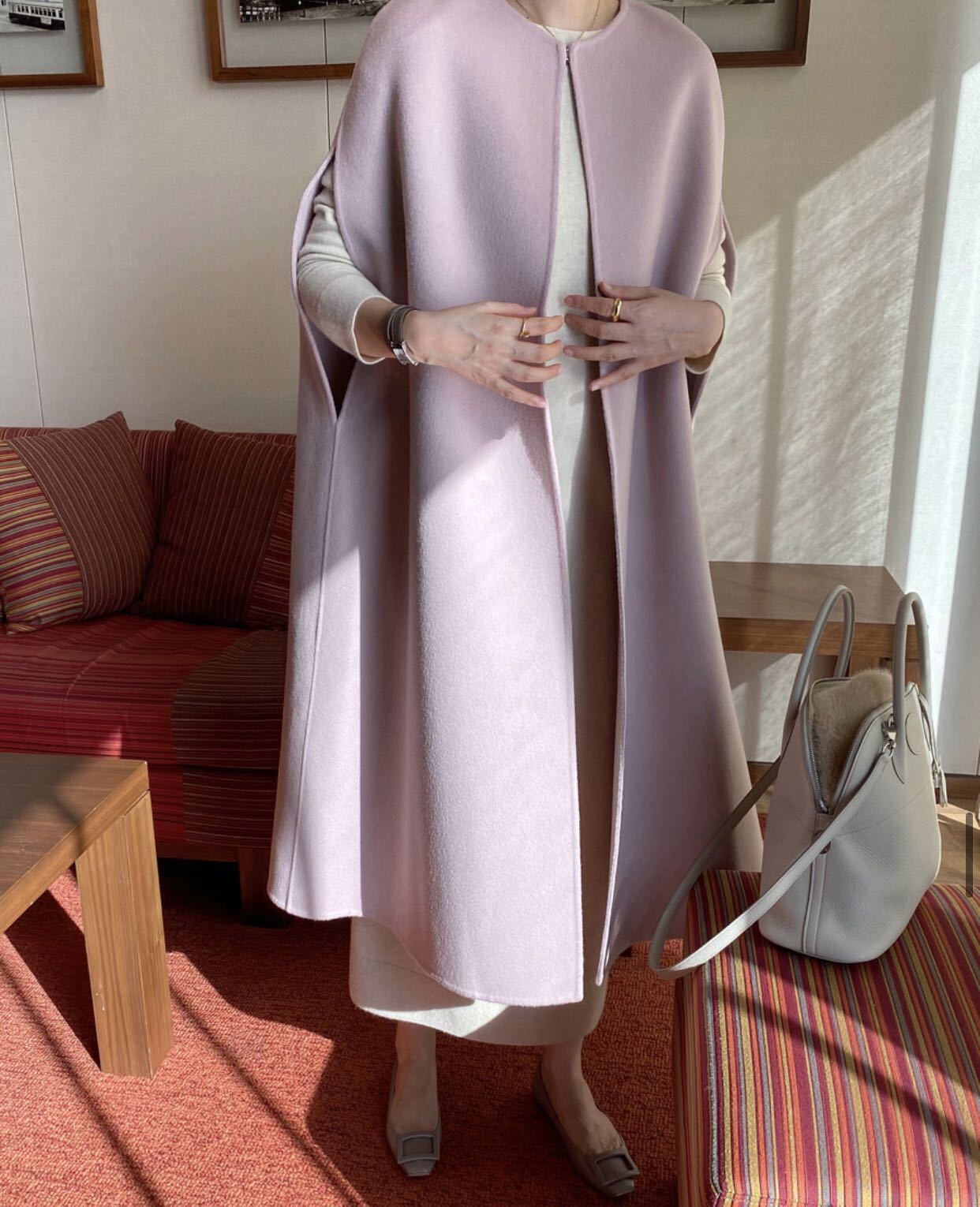 これからのシーズンに大人気のチェスターフィールドコートです。スカートでもパンツでも合わせやすいので一着持っていると大活躍するアイテムです。