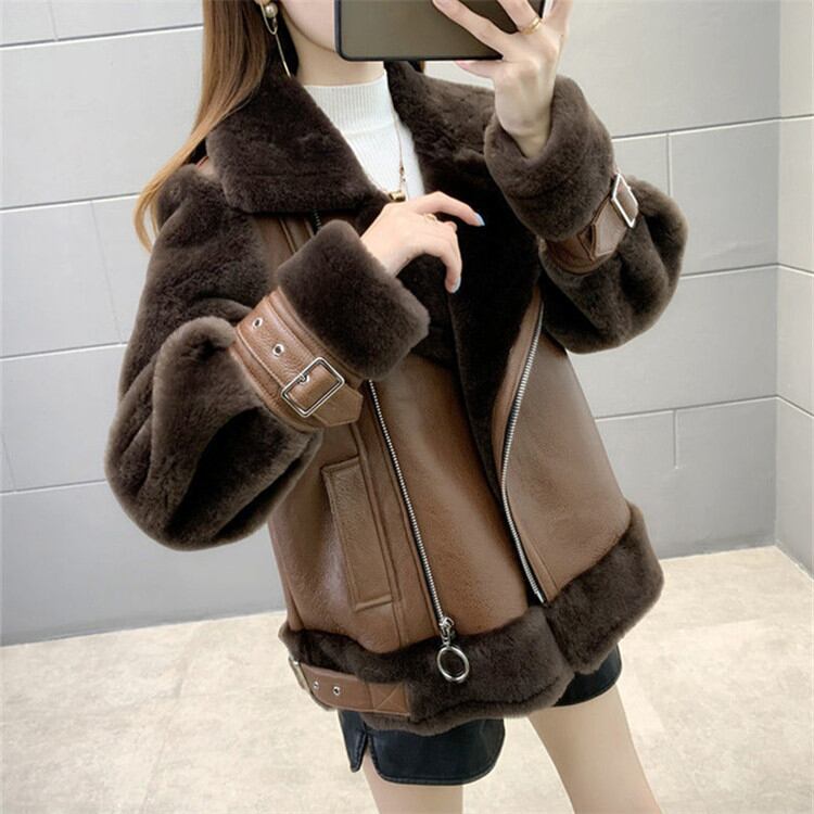 ◎【送料無料】ラムレザージャケット 厚手 コート 2021年秋冬新作 短いスタイル 大きいサイズ