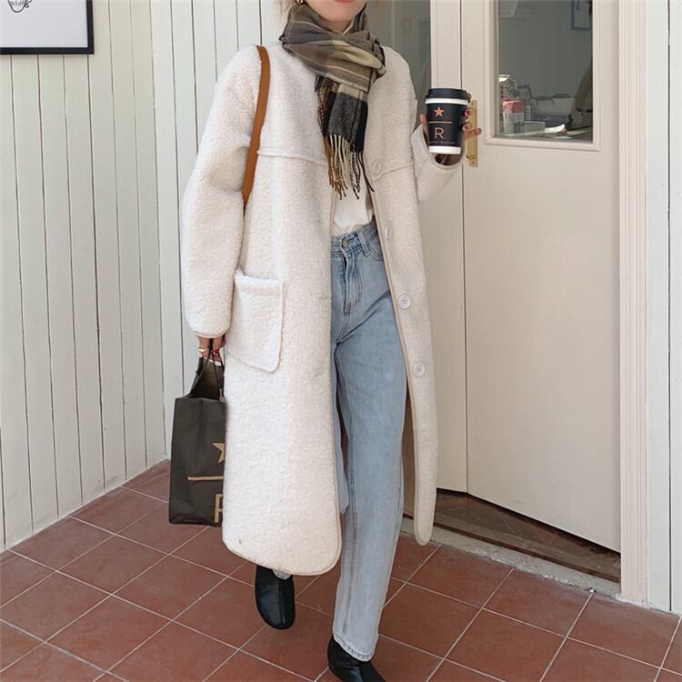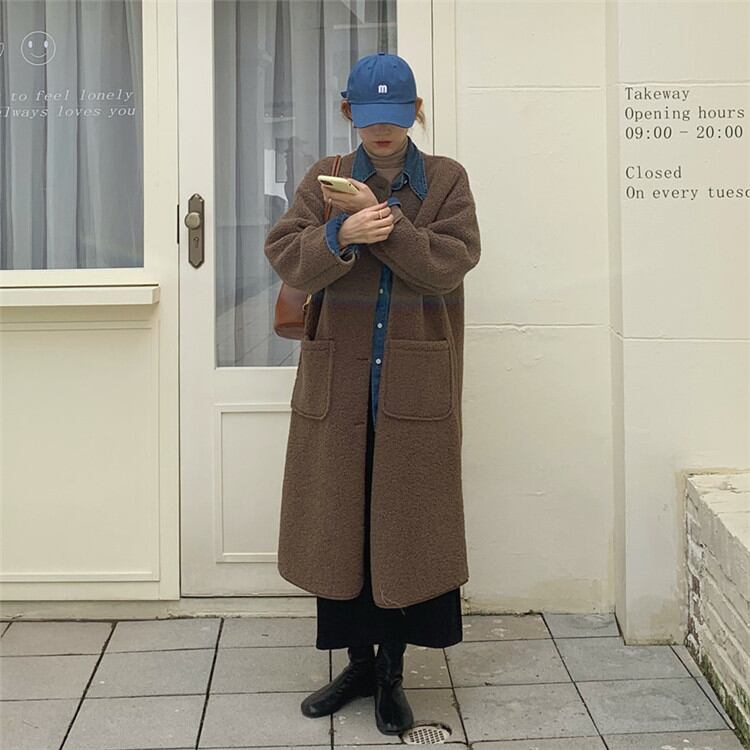 ゆったりする 単体ボタン 子羊の毛 コート ロングセクション カジュアル ヤングスタイル