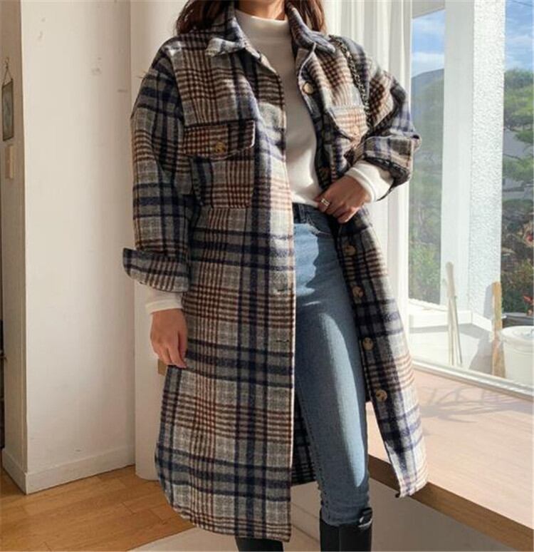 ゆったりする スリム レトロ チェック柄 中・長セクション チェスターコート 大人気