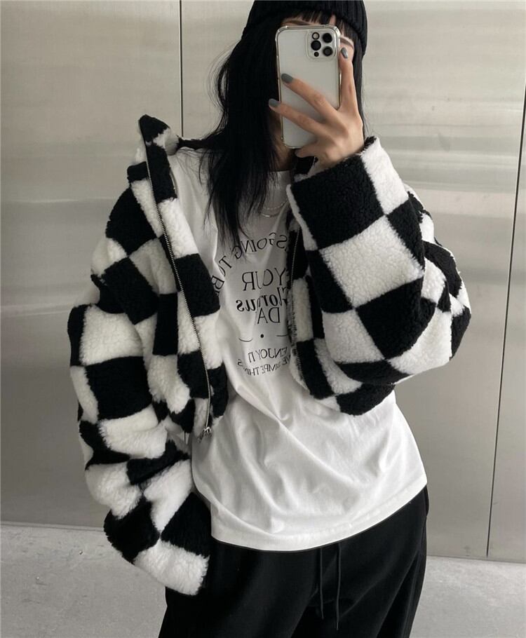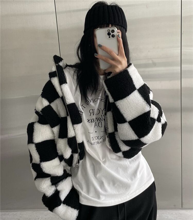 短いスタイル スタンドカラー ヤングスタイル 暖かい 厚手 コート レディース チェック柄