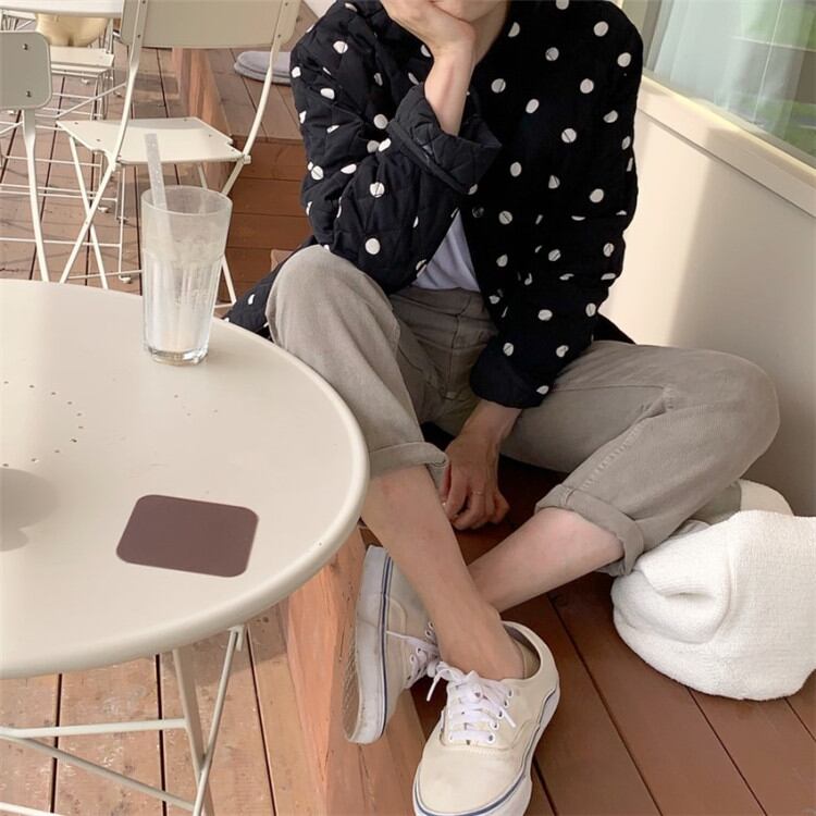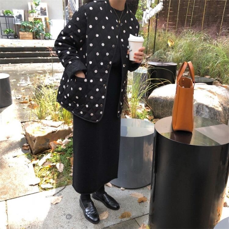 トップス 暖かい 厚手 コート 女性 ゆったりする ドット カジュアル ヤングスタイル