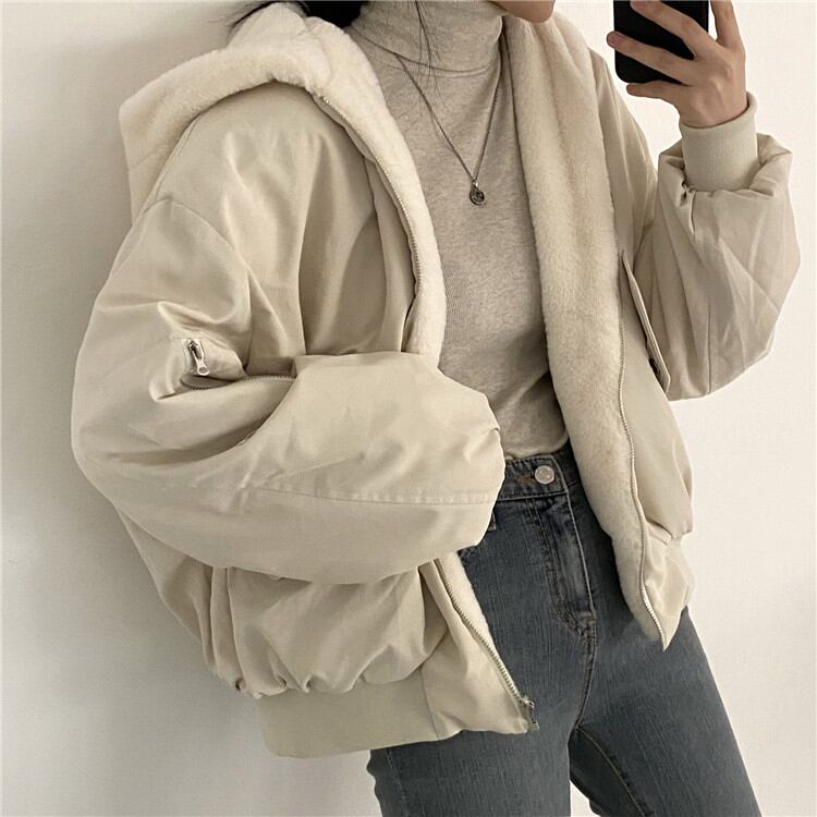 カジュアル フード付き 柔らかい ピュアカラー 暖かい 厚手 ヤングスタイル 女性 両面の着用