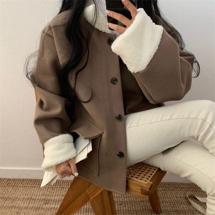 子羊の毛 ゆったりする 短いスタイル コート 大人気 シンプル ヤングスタイル 気質 カジュアル