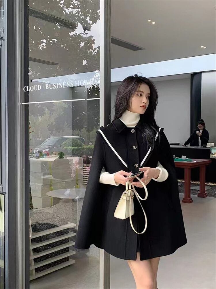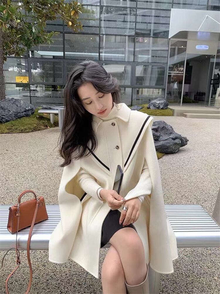 韓国ファッション 2021 新品 ハイエンド ファッション ポンチョ チェスターコート 気質 ギャザリング
