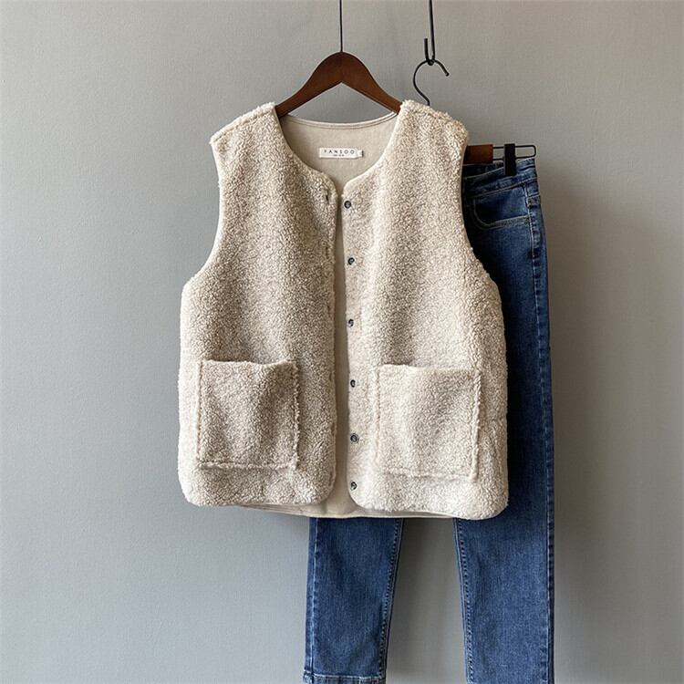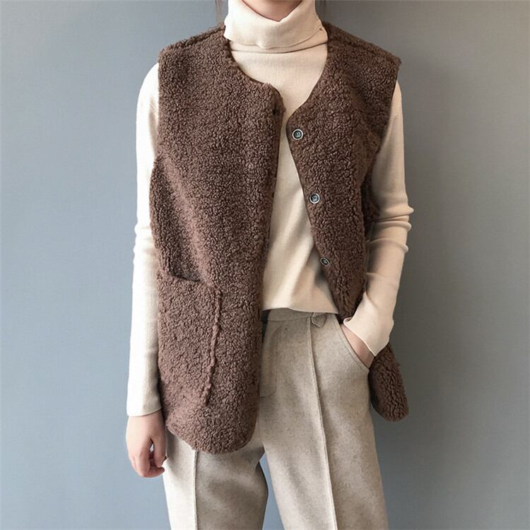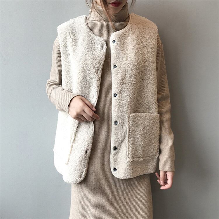 子羊の毛 ベスト 女性 韓国版 ゆったりする 袖なし ぬいぐるみ タンクトップ コート