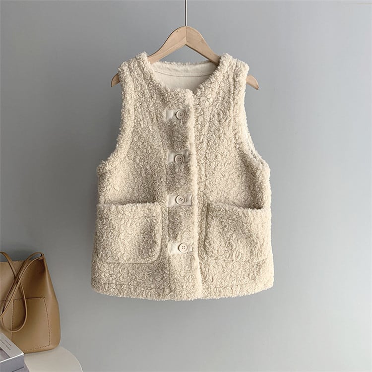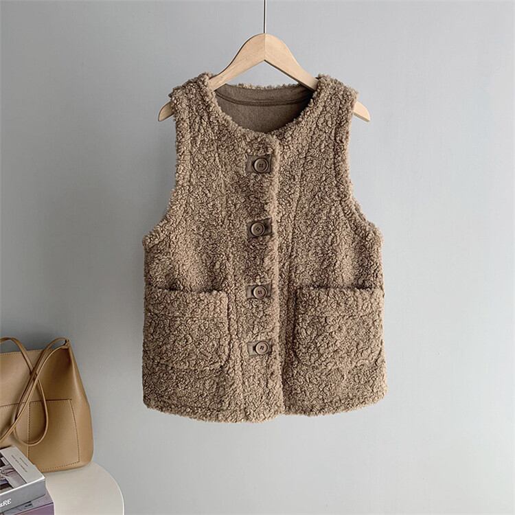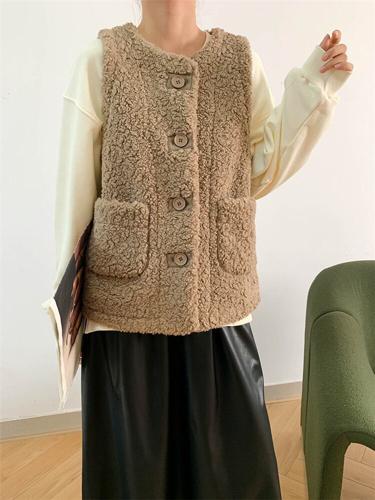 ◎【送料無料】簡単おしゃれに見える服 単体ボタン 気質 ピュアカラー ベスト レディース 怠惰な風 ぬいぐるみ