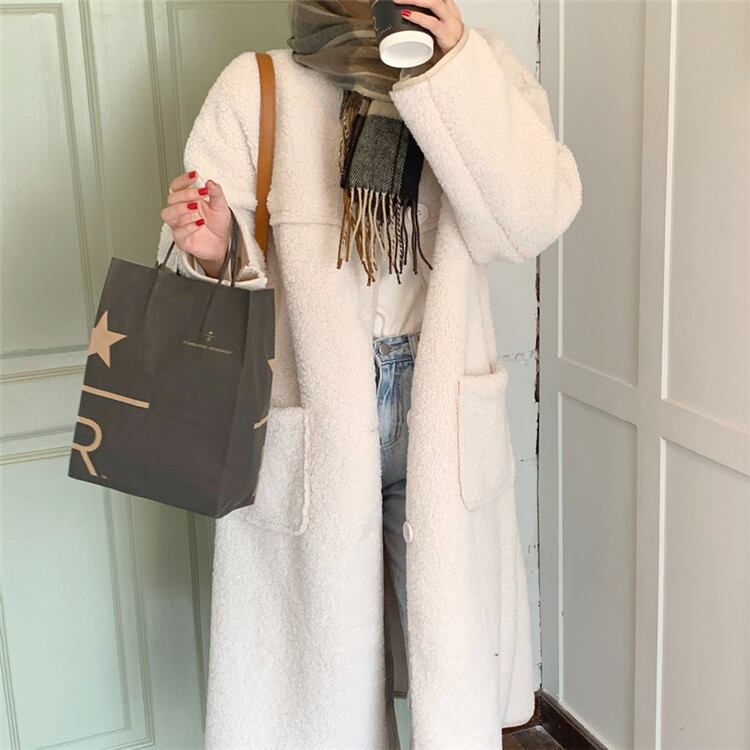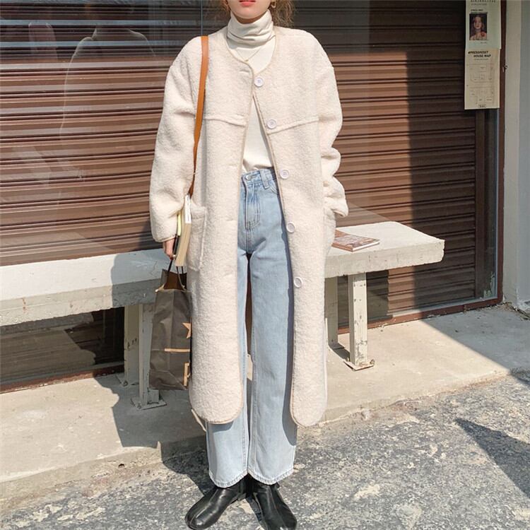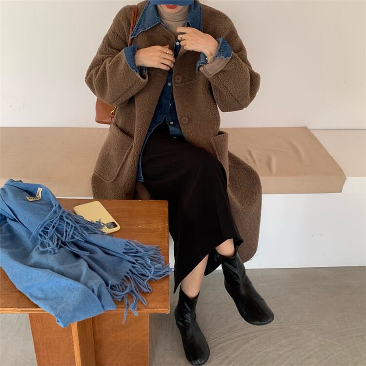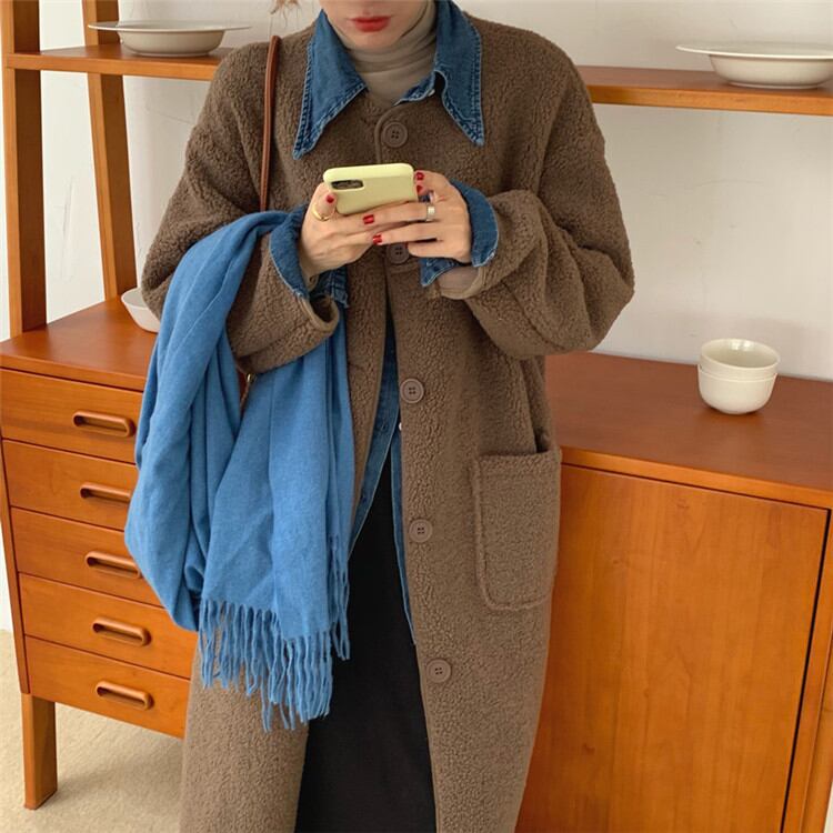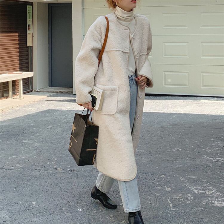 単体ボタン 子羊の毛 コート 中・長セクション カジュアル 暖かい シンプル