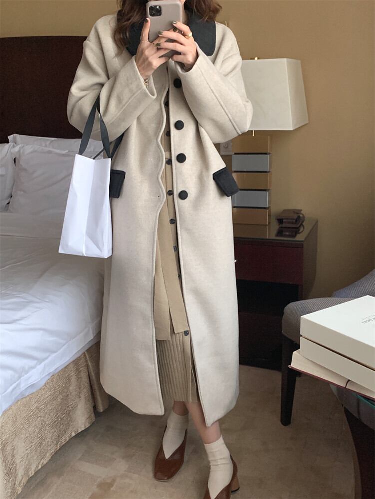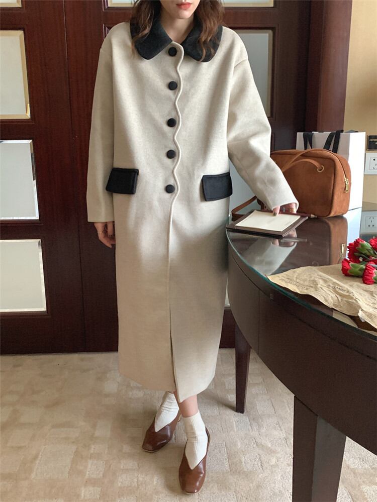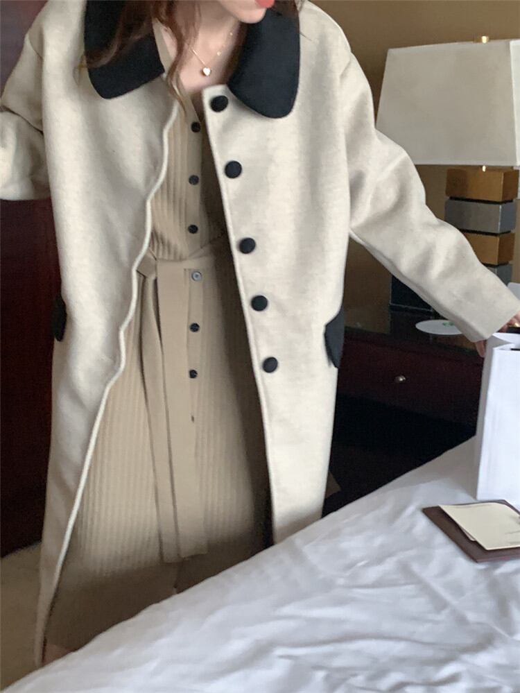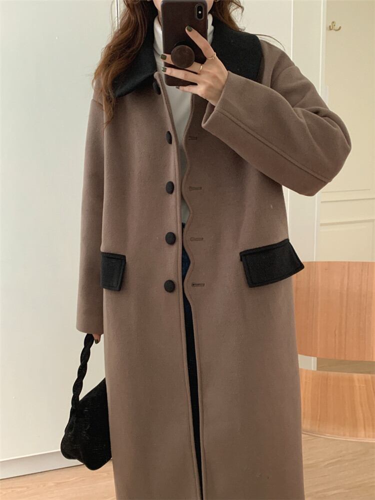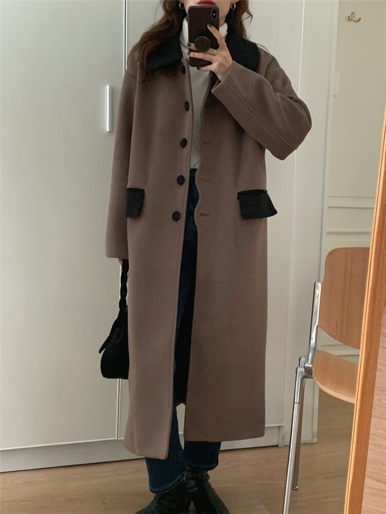 ◎【送料無料】洗練されたシルエット 怠惰な風 カラーマッチング ラペル 単体ボタン ゆったりする 中・長セクション