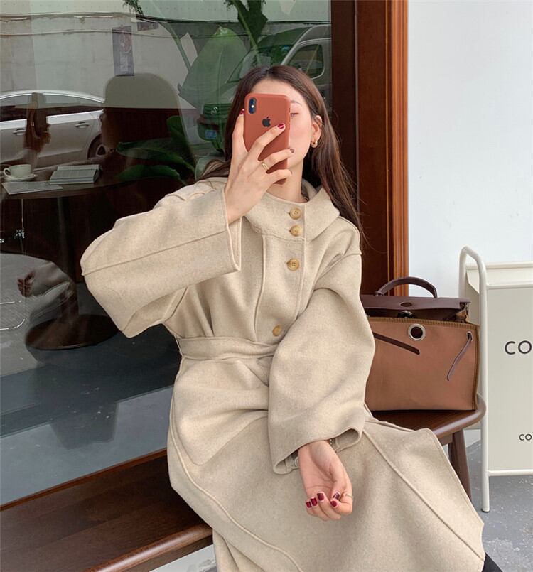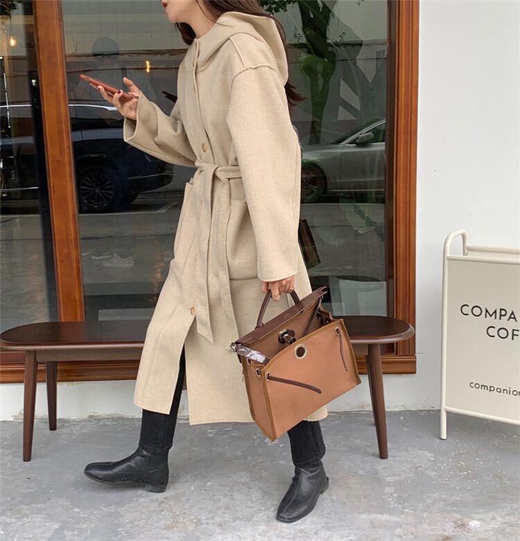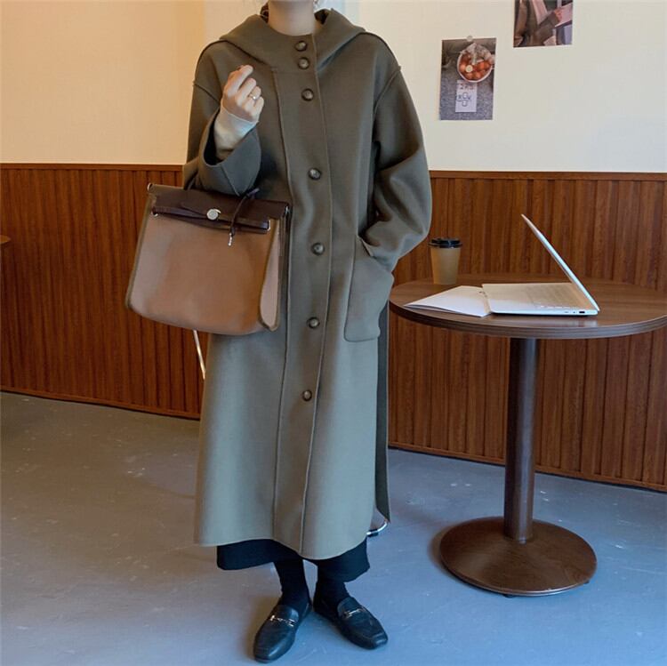 ◎【送料無料】大人のキレイをお約束 フード付き チェスターコート 単体ボタン ゆったりする 中・長セクション