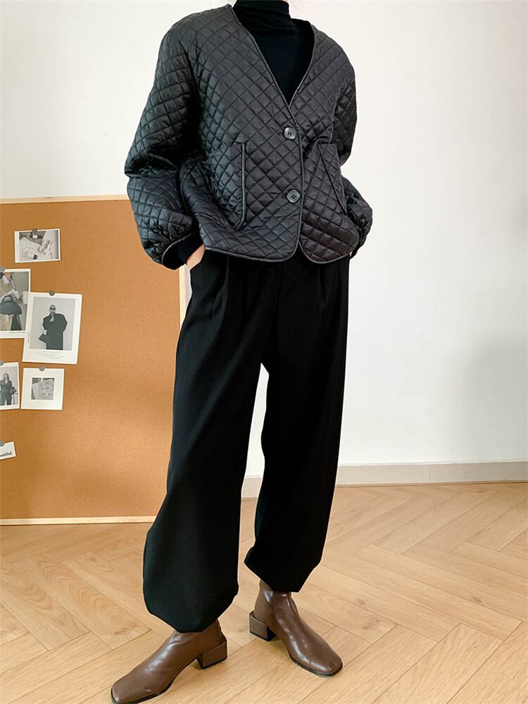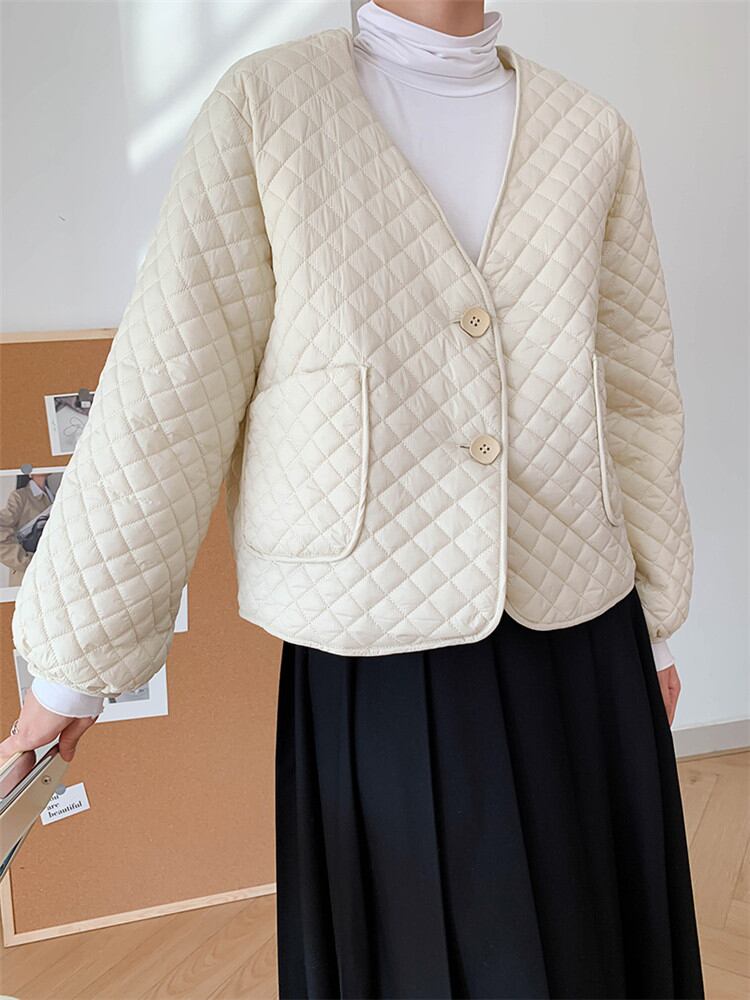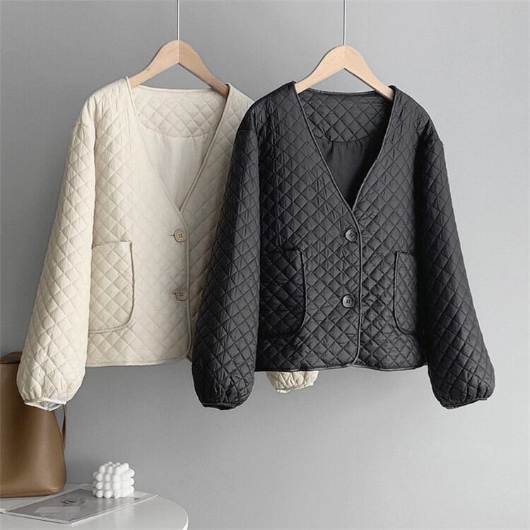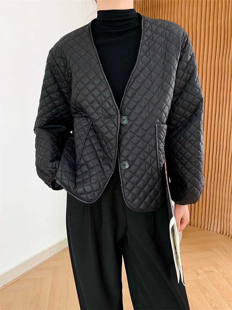 コットンジャケット Vネック 薄い カジュアル ゆったりする スリム コート 女性 ピュアカラー