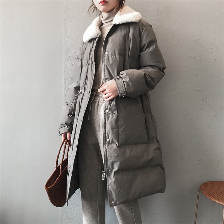 ◎【送料無料】ダウン コットン 女性 毛皮の襟 受け取って腰 ロングセクション 暖かい 厚手 コート