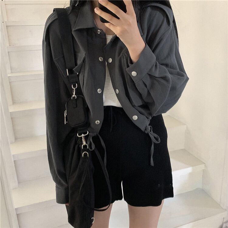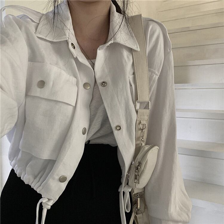 ラペル 単体ボタン ゆったりする 受け取って腰 マルチポケット 長袖 短いスタイル コート