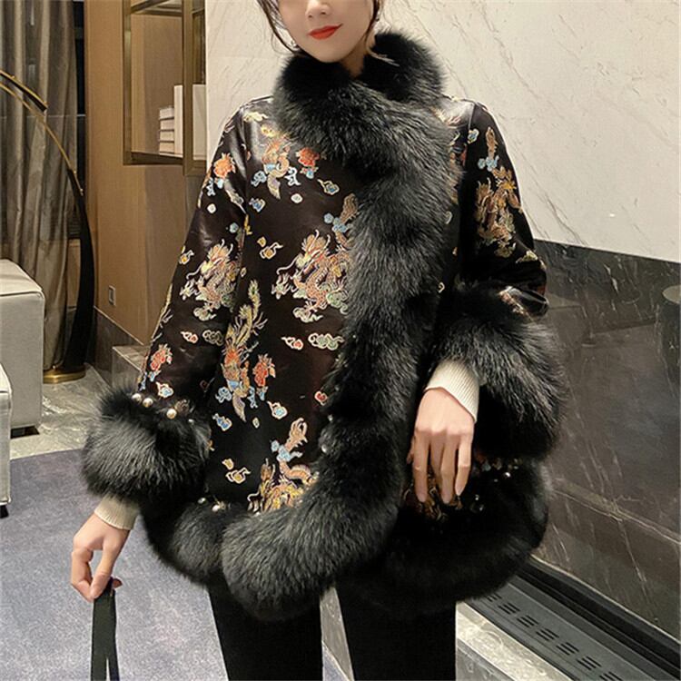 ポンチョ ファー コート 2021年冬の新作 イミテーションフォックス 中国の風 中国服