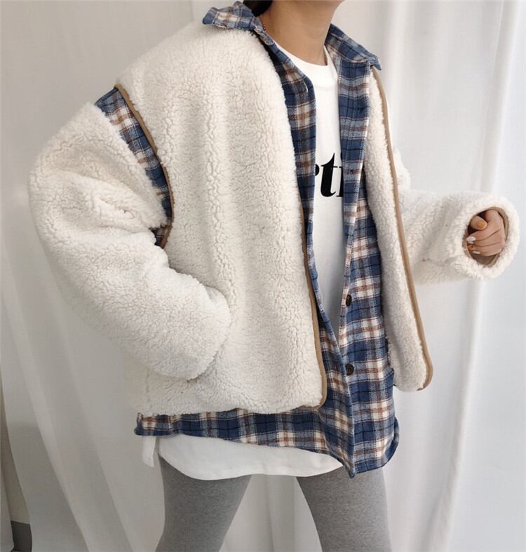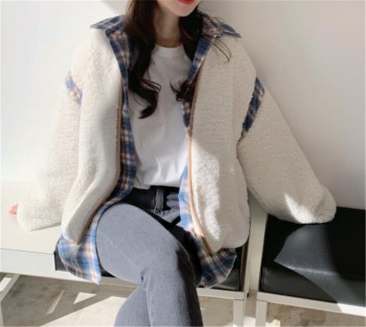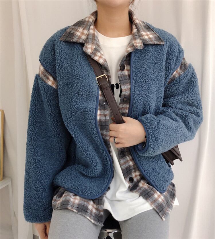 カラーマッチング 格子縞 子羊の毛 カジュアル コート ゆったりする ヤングスタイル