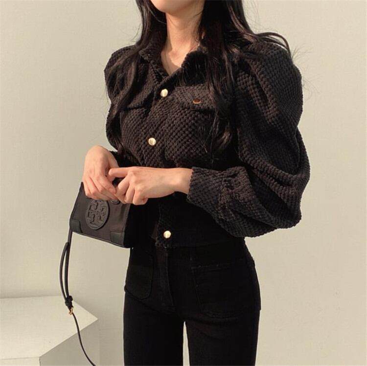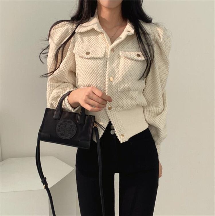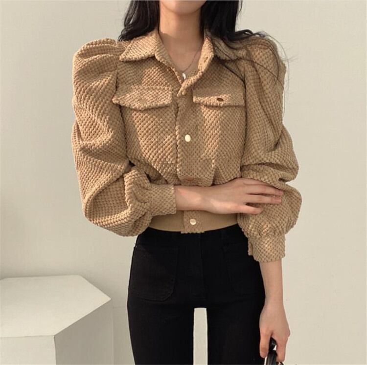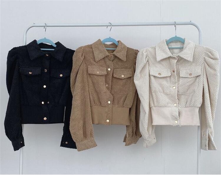 ◎【送料無料】通勤スタイルも秋顔に コーデュロイ 短いスタイル パフスリーブ 大人気 デザインセンス コート