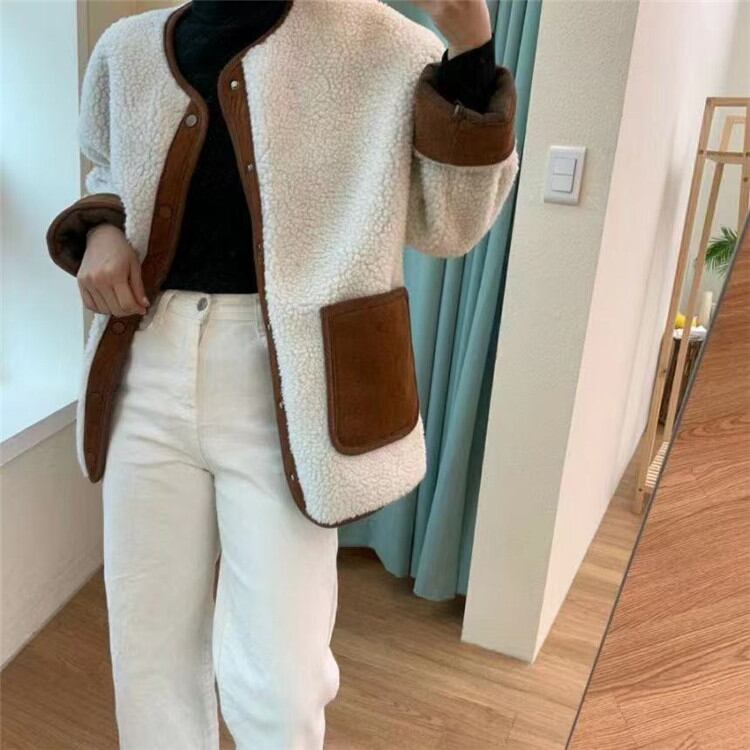 ◎【送料無料】1枚でオシャレ見えが叶う 子羊の毛 暖かい 厚手 コート 女性 冬 ゆったりする