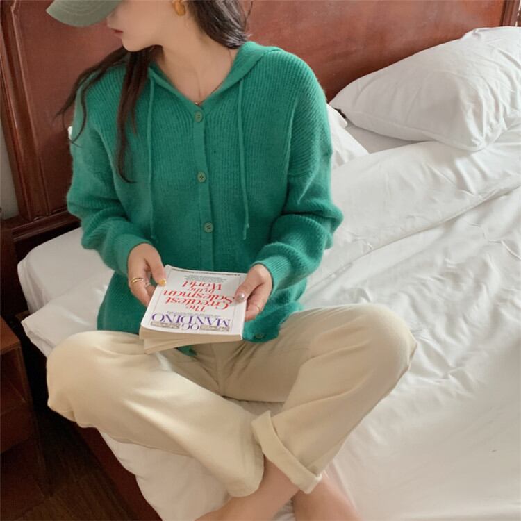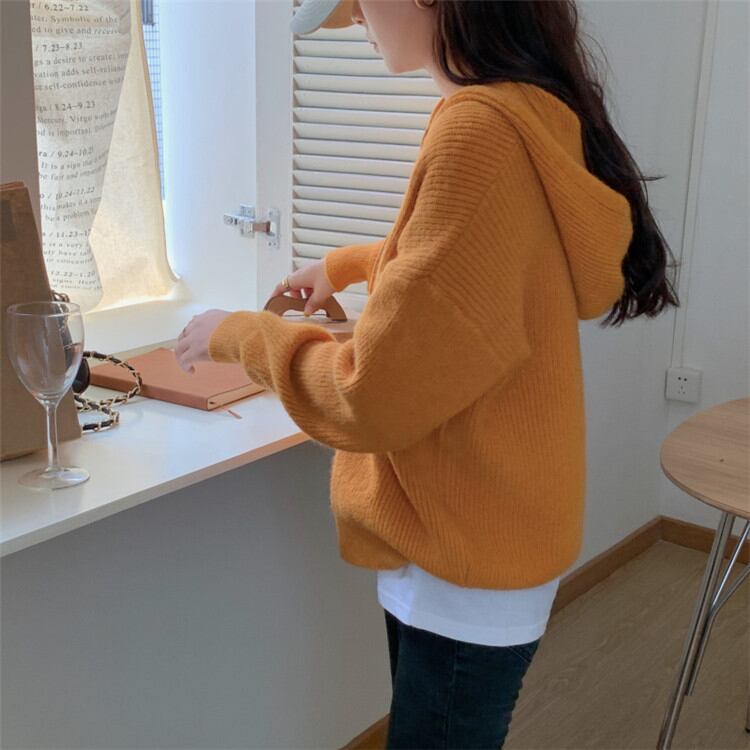 大人気 フード付き ピュアカラー 怠惰な風 ニット セーター カーディガン コート 大人気