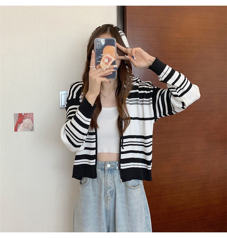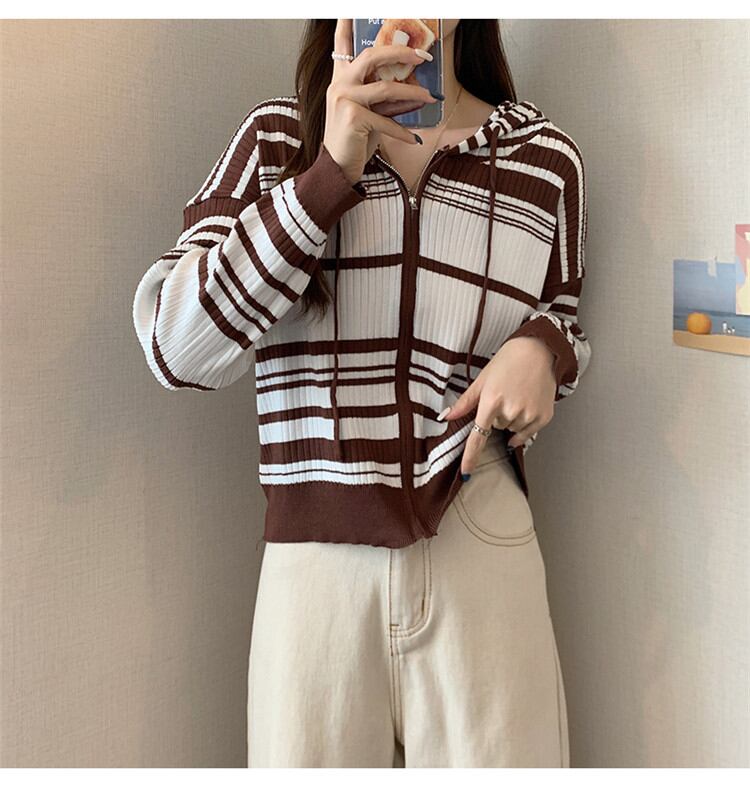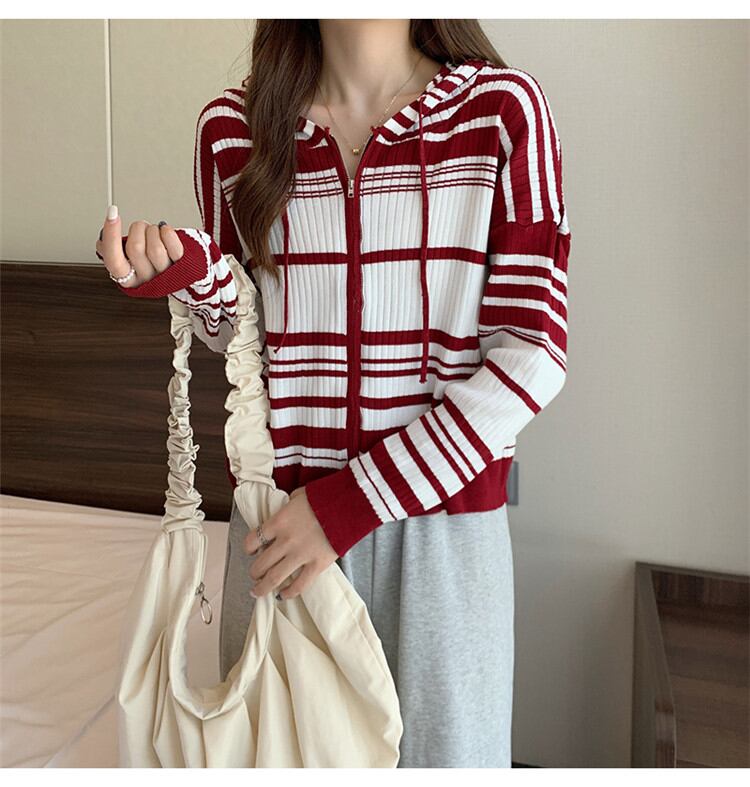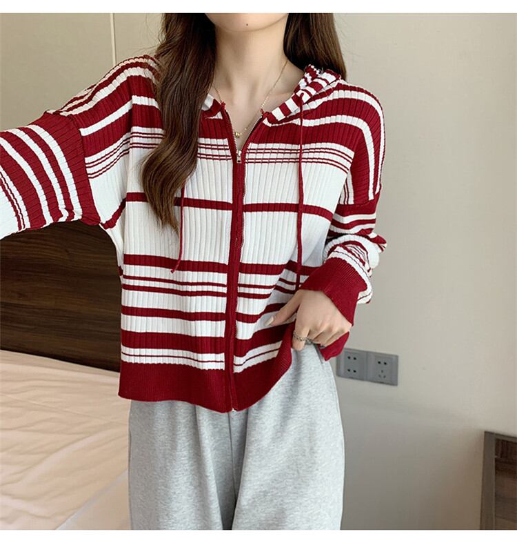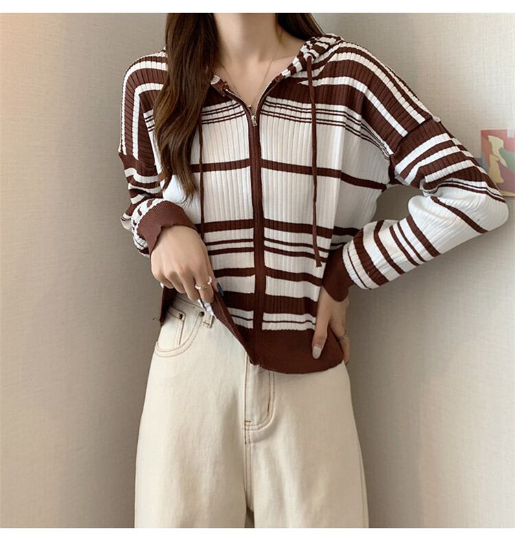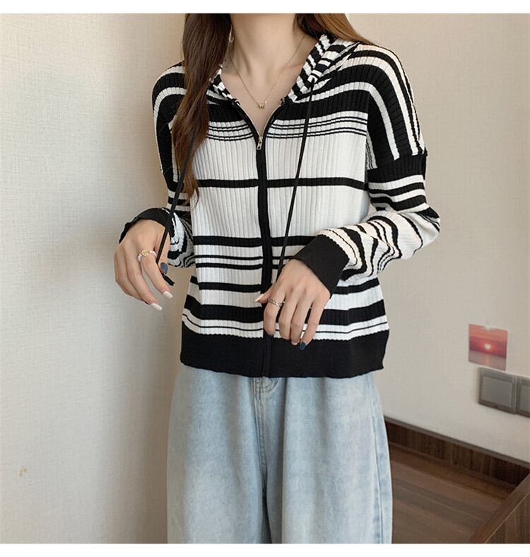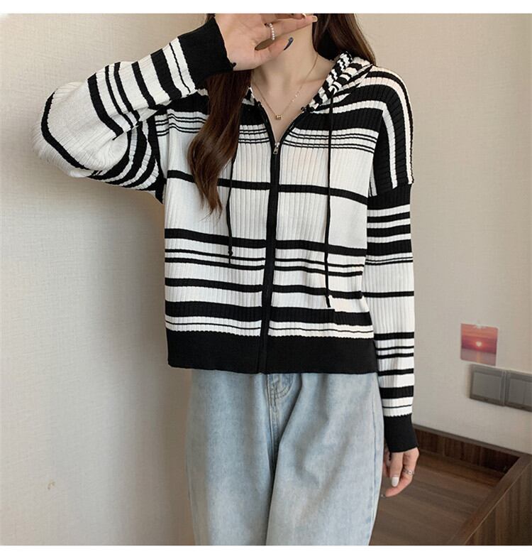 ◎【送料無料】女らしさを追求 ゆったりする ボーダー フード付き ニット カーディガン コート トップス カジュアル