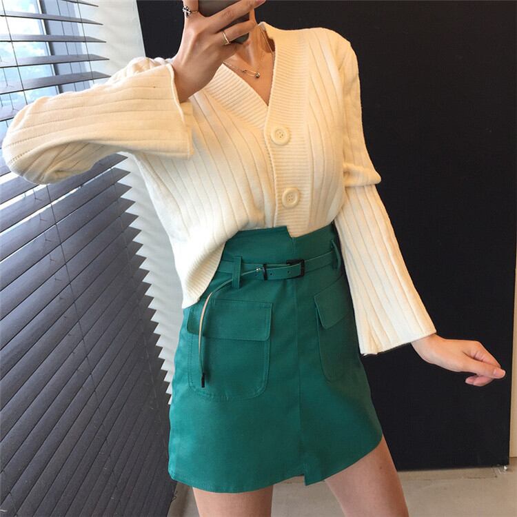 ピュアカラー 単体ボタン Vネック 気質 カーディガン セーター コート 学院風 エレガント スリム
