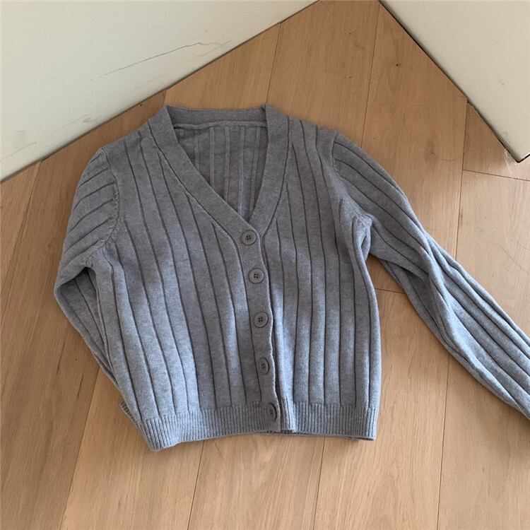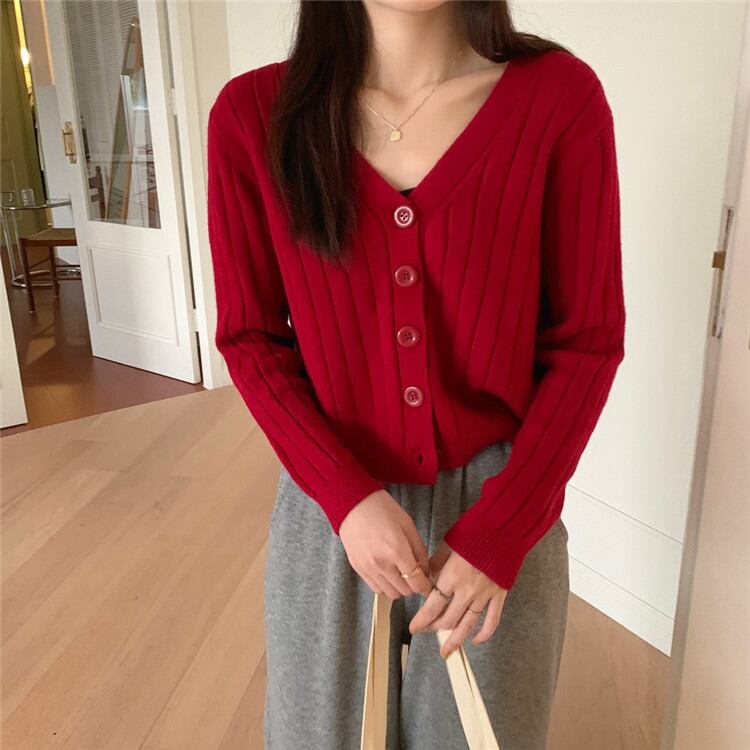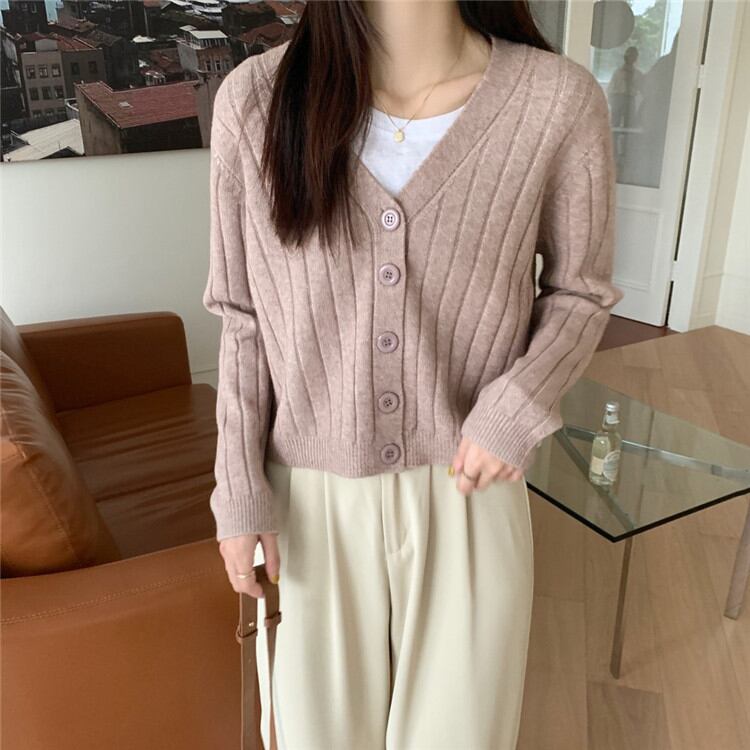 カーディガン ニット セーター ヤングスタイル スリム ピュアカラー 短いスタイル カジュアル Vネック