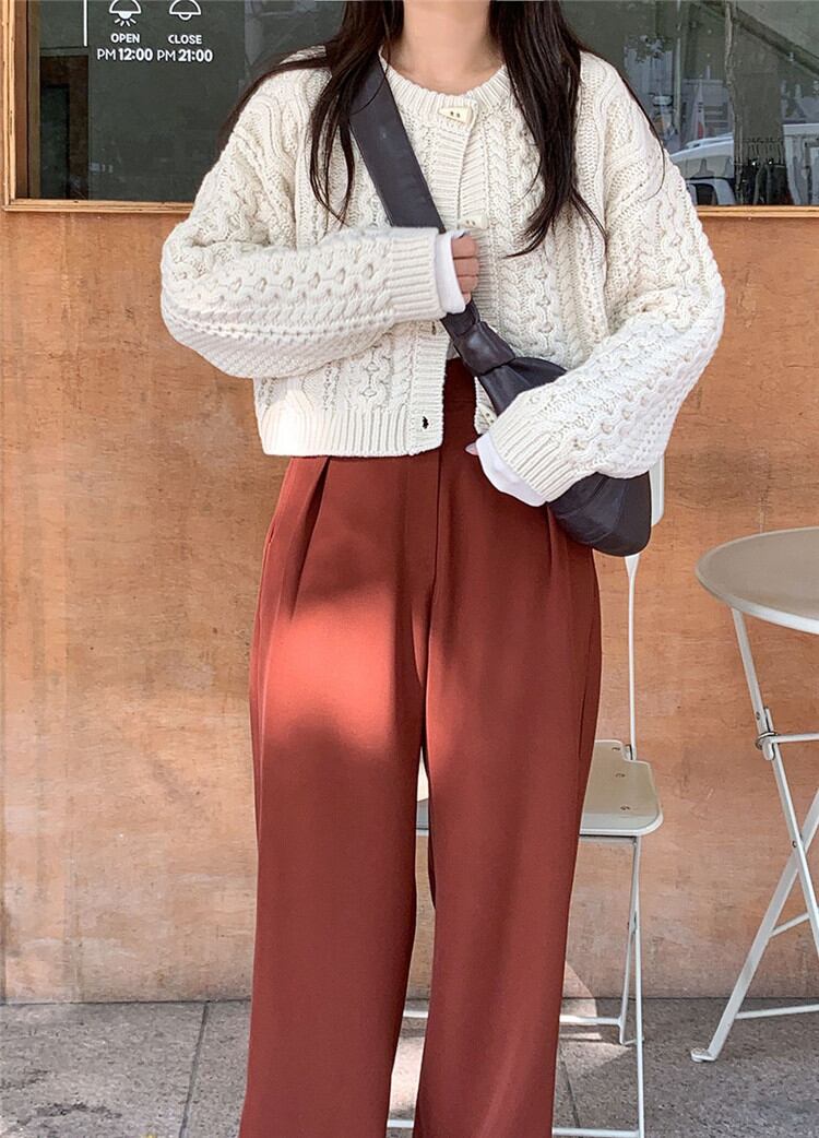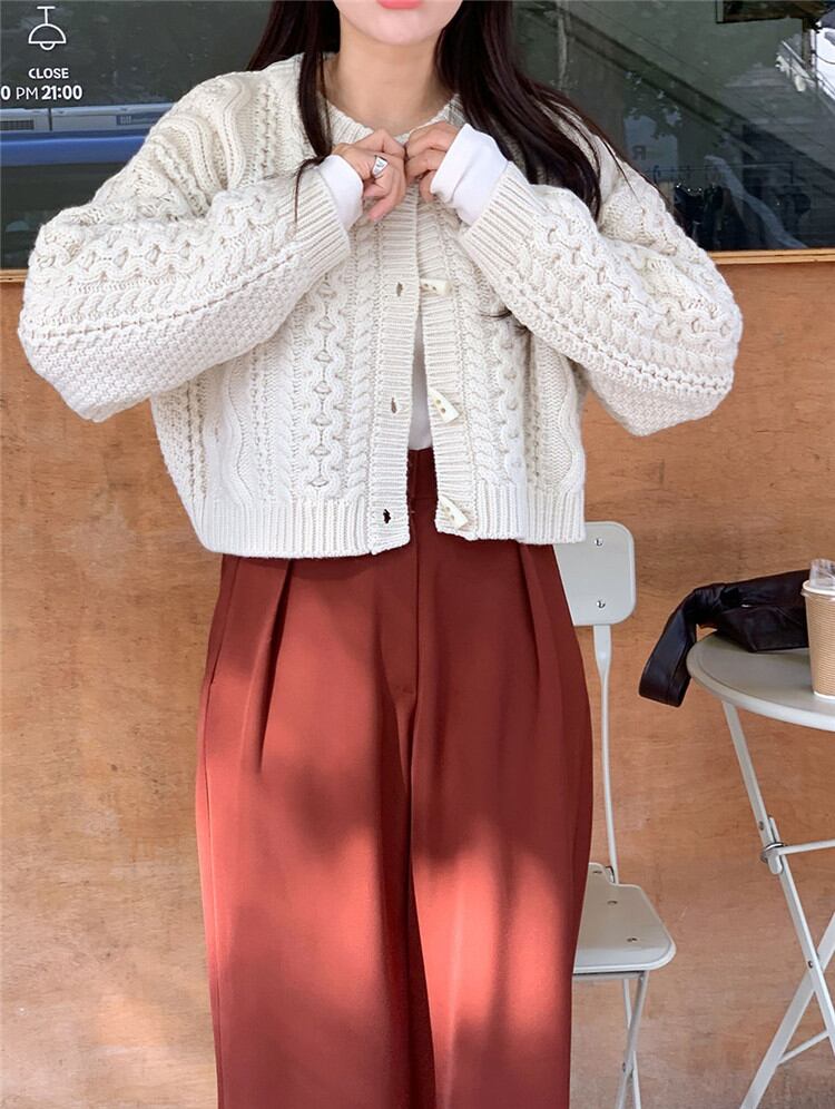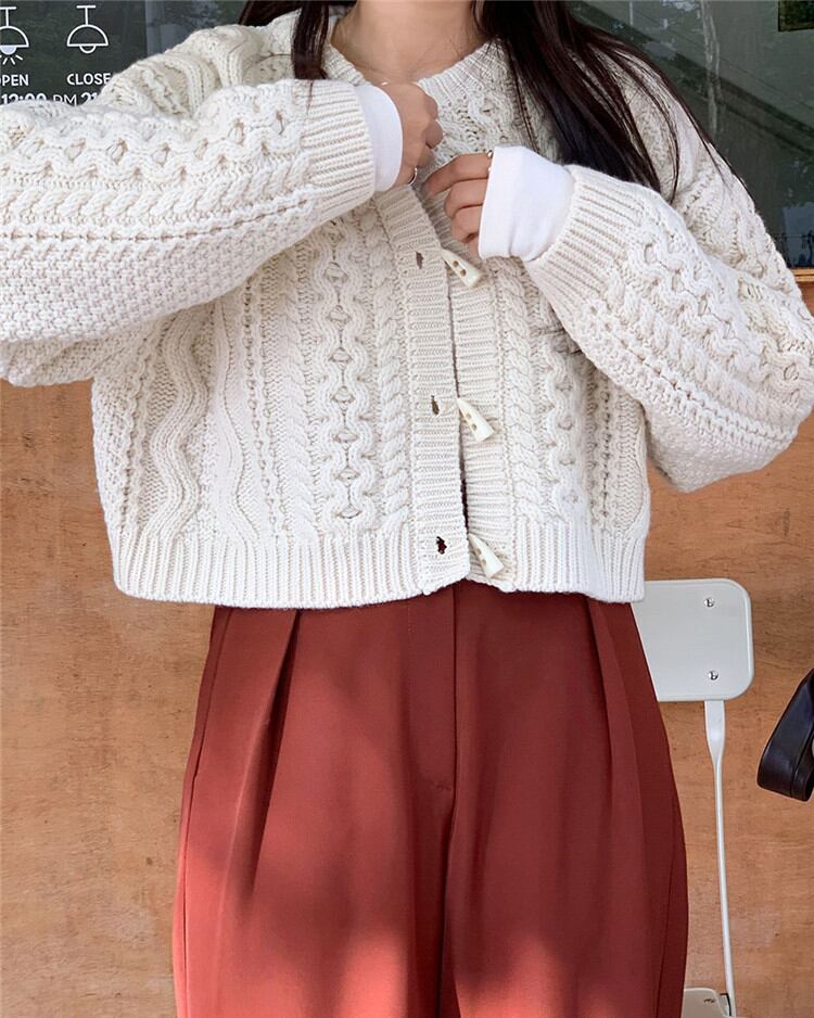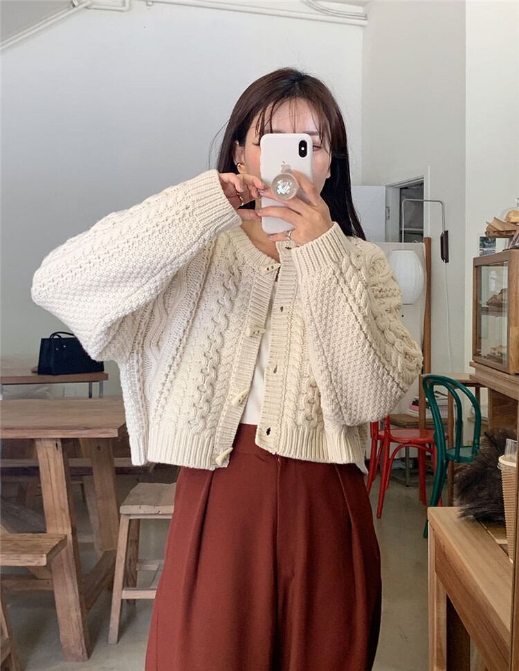 ピュアカラー 短いスタイル カジュアル カーディガン ニット セーター 麻の花 小さい新鮮な