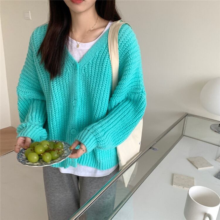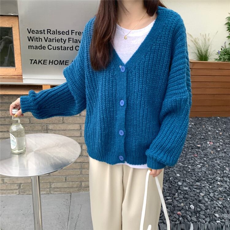 短いスタイル カジュアル カーディガン ニット セーター 大人気 ヤングスタイル ゆったりする