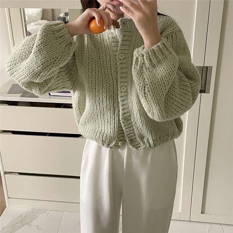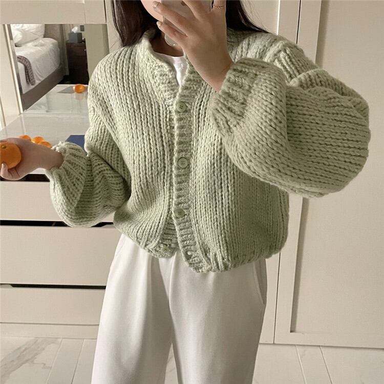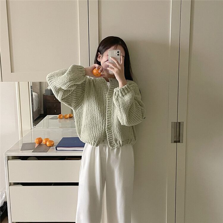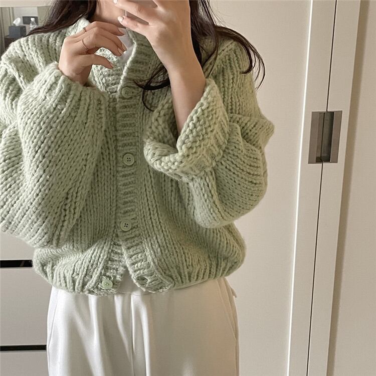 スリム 短いスタイル カジュアル カーディガン ニット セーター 大人気 ピュアカラー ヤングスタイル