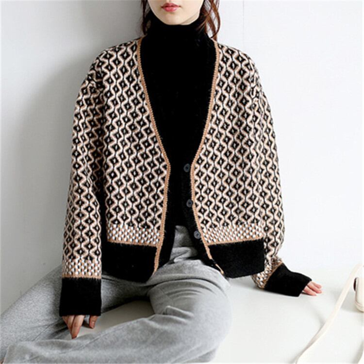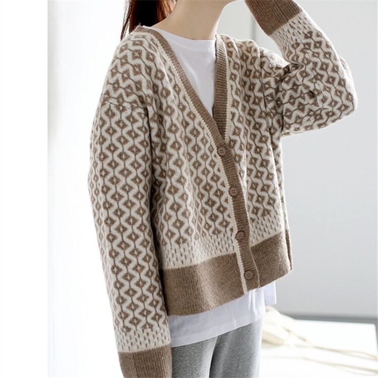 ◎【送料無料】Vネック ゆったりする コート 2021年秋冬 ニット カーディガン セーター