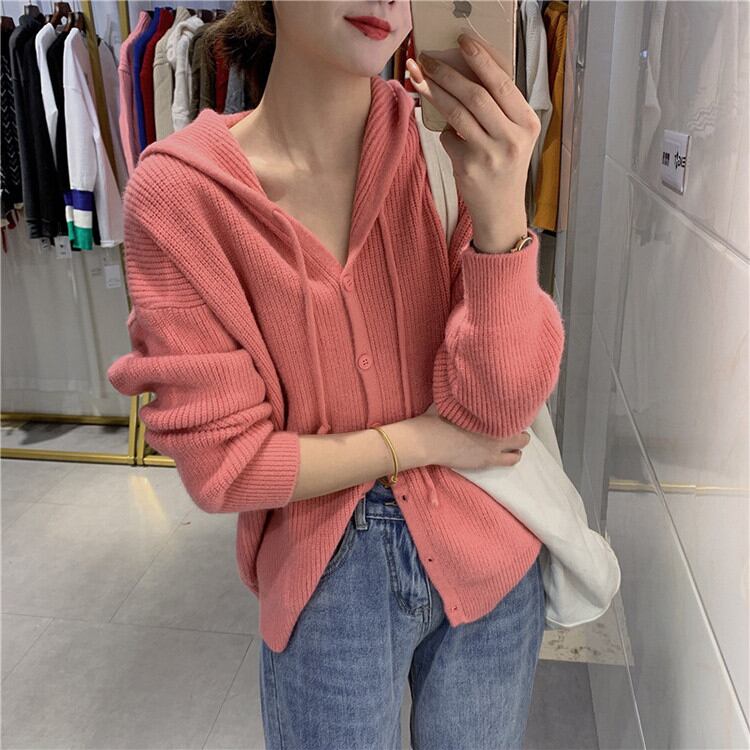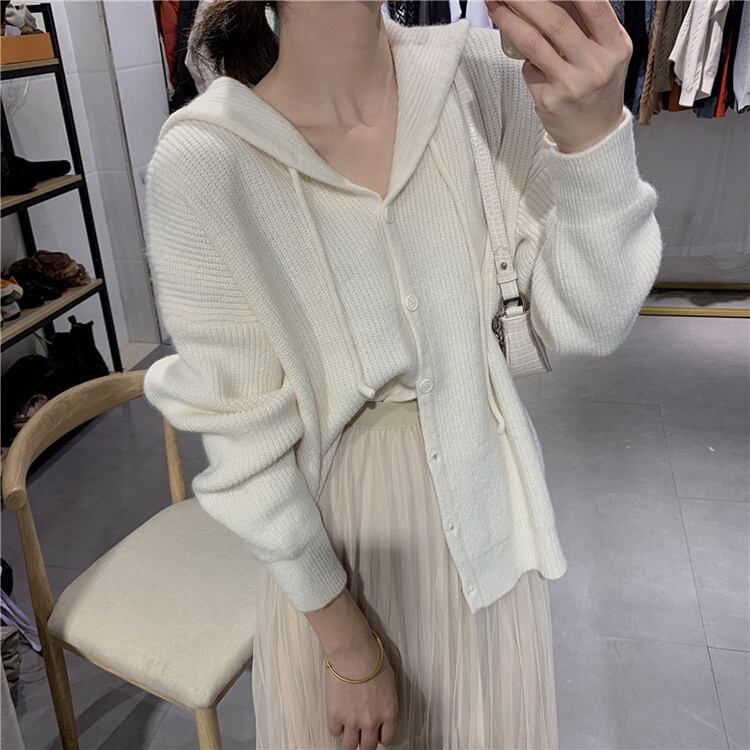 ◎【送料無料】ニット フード付き 2021年秋冬新作 バーカー カーディガン セーター コート 減齢