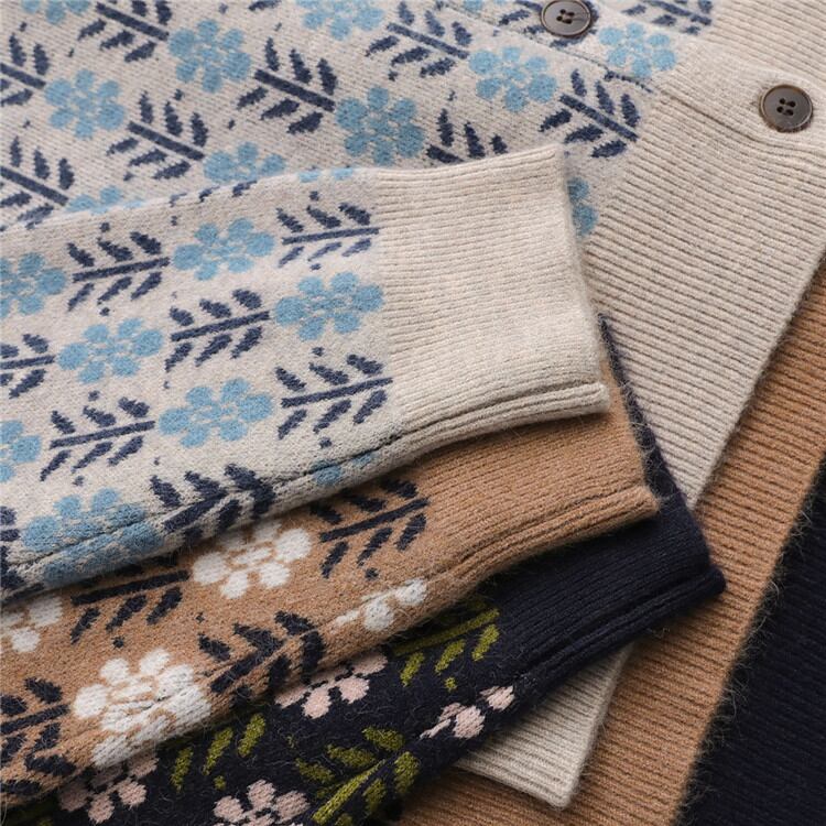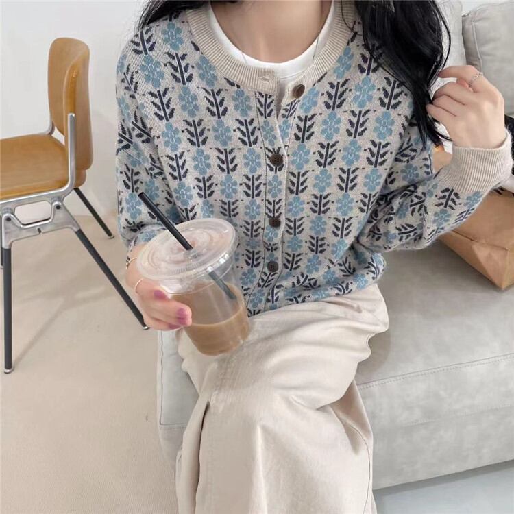 小さい新鮮な スリム 花 減齢 長袖 セーター コート ニット カーディガン レディース