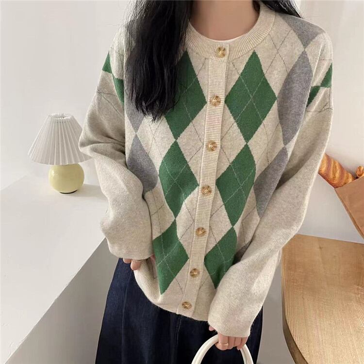 秋 新作 ゆったりする カーディガン レディース ラウンドネック ニット トップス