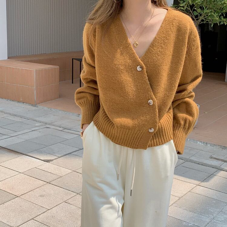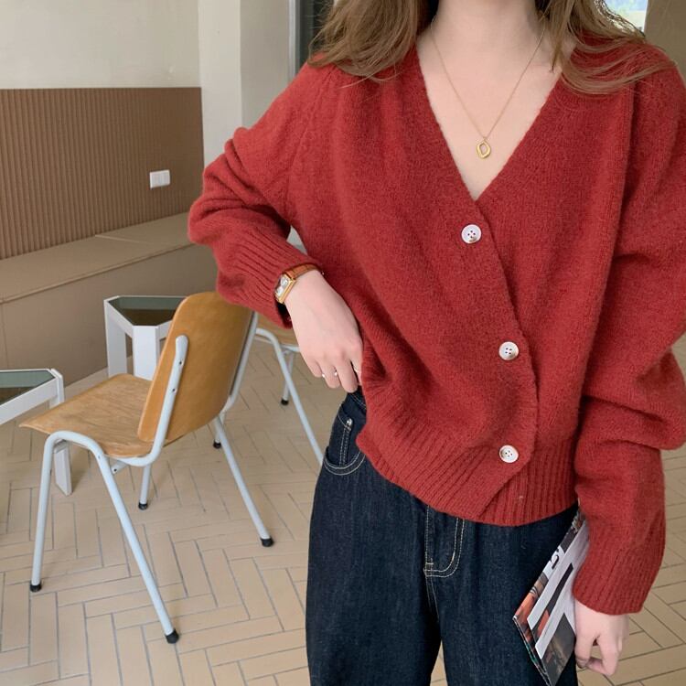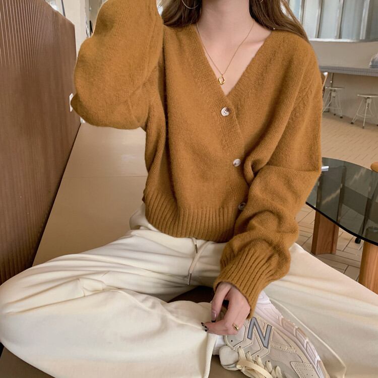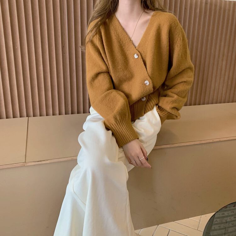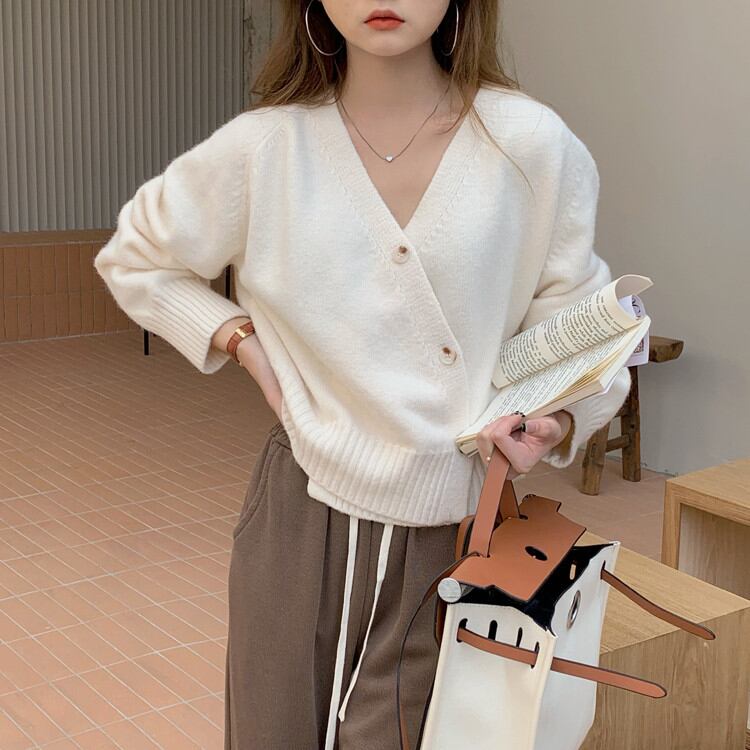 ピュアカラー デザインセンス 長袖 ニット トップス Vネック セーター コート