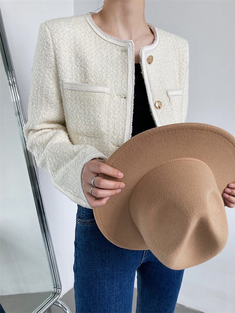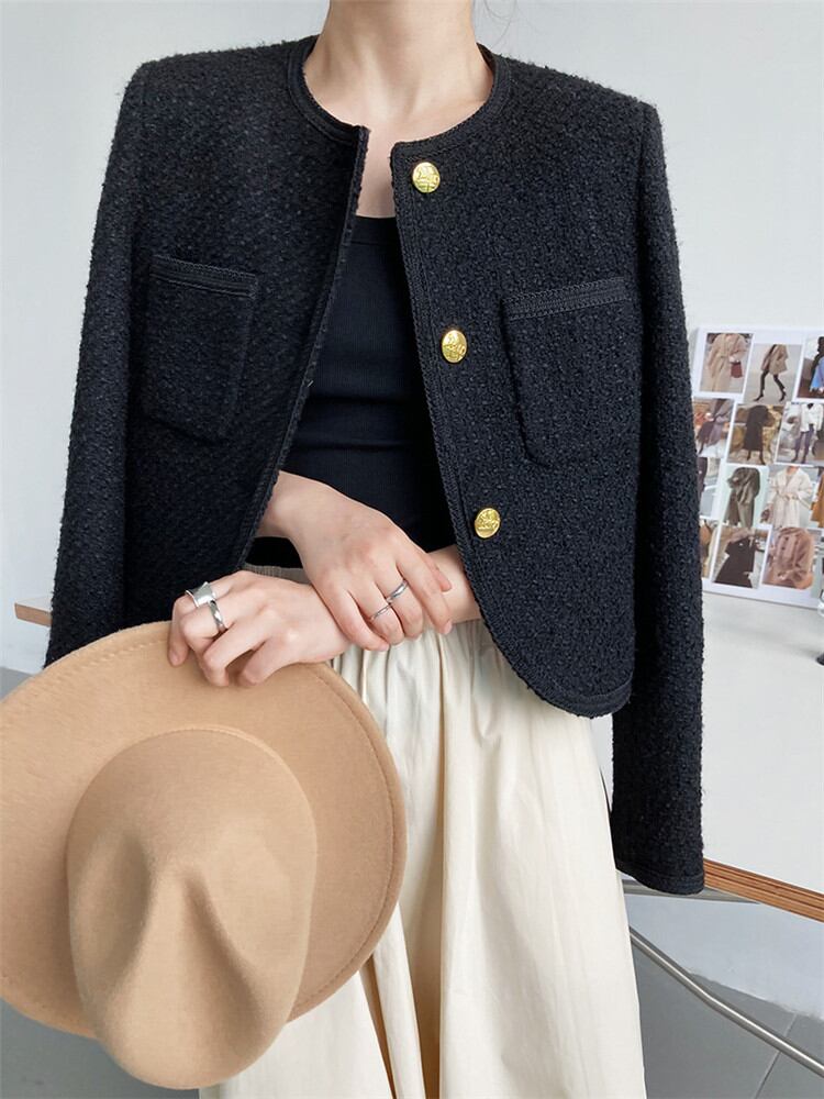 ◎【送料無料】コート レディース 秋の新作 ウール 気質 長袖 ラウンドネック 短いスタイル