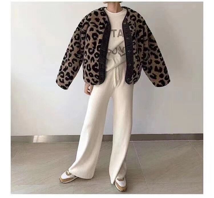 ◎【送料無料】活気少女 ヤングスタイル レオパード柄 コットン服 可愛い 短いスタイル 大人気 コート