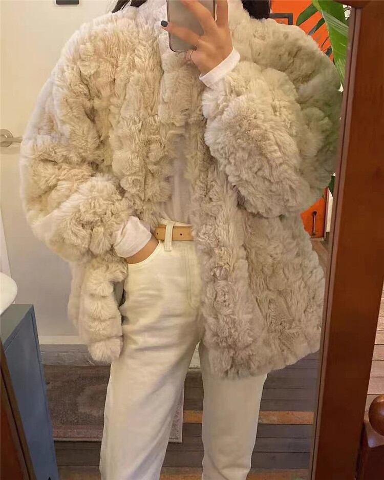 冬 小さい新鮮な 大人気 ゆったりする 子羊の毛 暖かい 厚手 ファー コート ジェントルスタイル