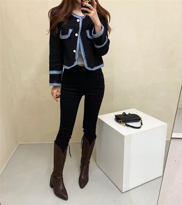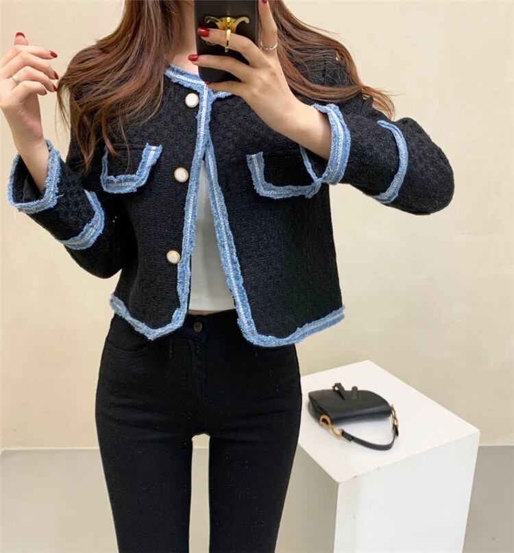◎【送料無料】着心地に拘った、シンプルアイテム 粗い花 デザインセンス カラーマッチング 短いスタイル コート