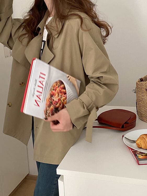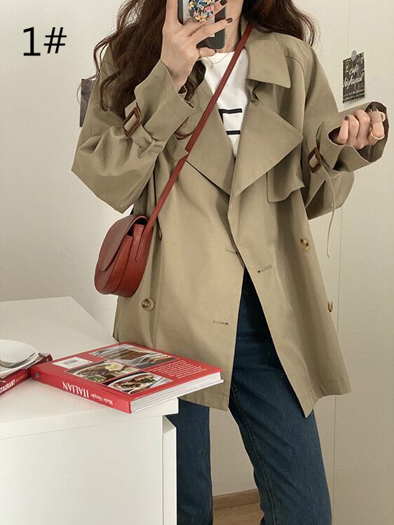 ◎【送料無料】2021秋新作 トレンチコート ショート丈コート アウター カジュアル レディース 春秋