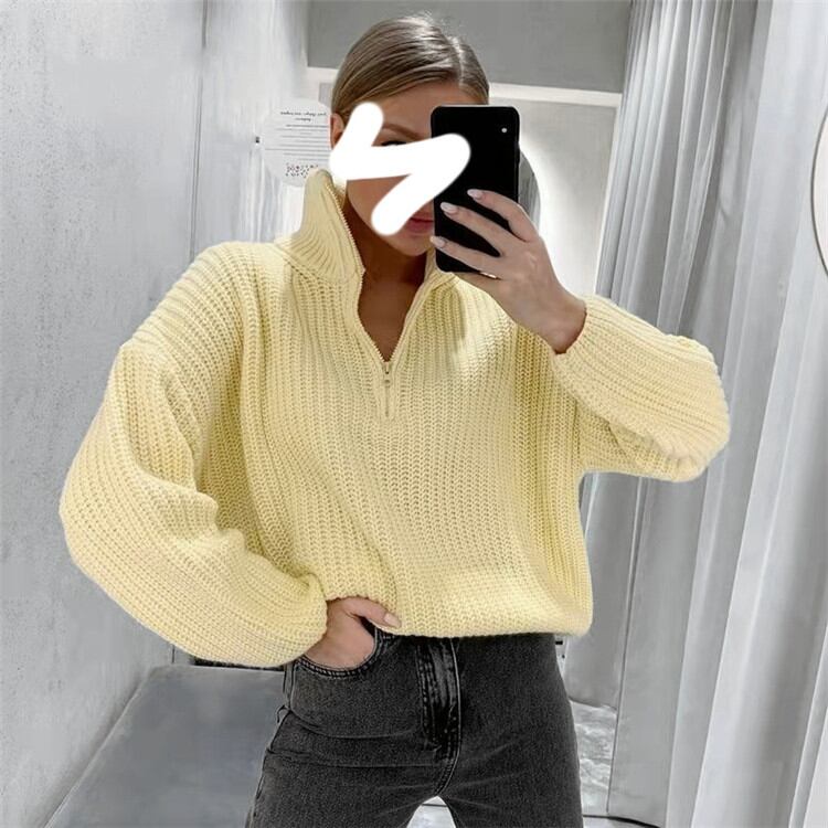 ◎【送料無料】ニットトップス 2021年新作 ゆったりする セーター 無地 ジッパー カジュアル