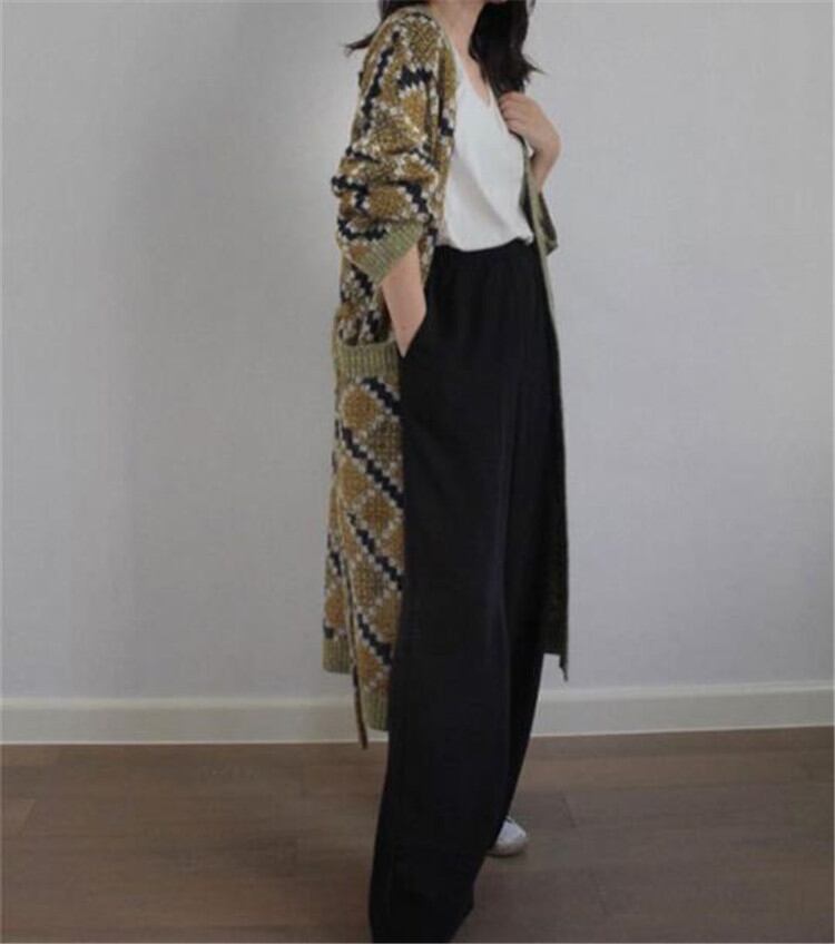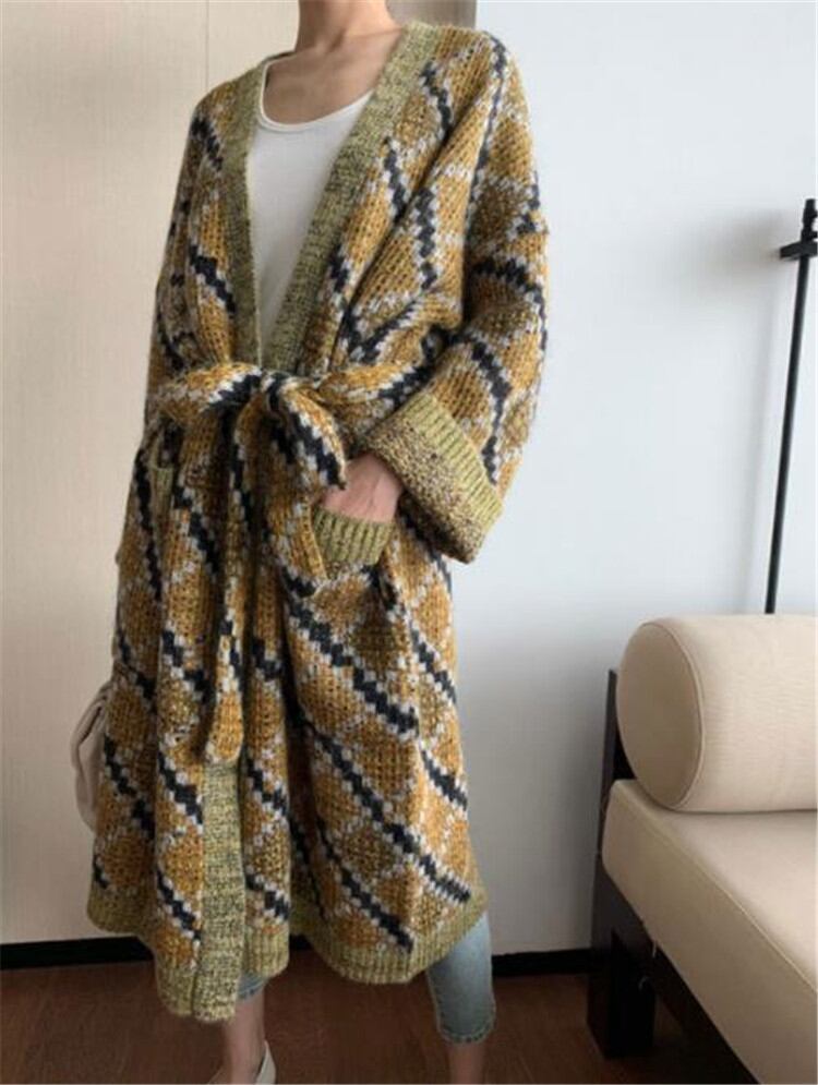 ◎【送料無料】ニット カーディガン コート 2021年春秋新作 長袖 レトロ ひし形 ゆったりする