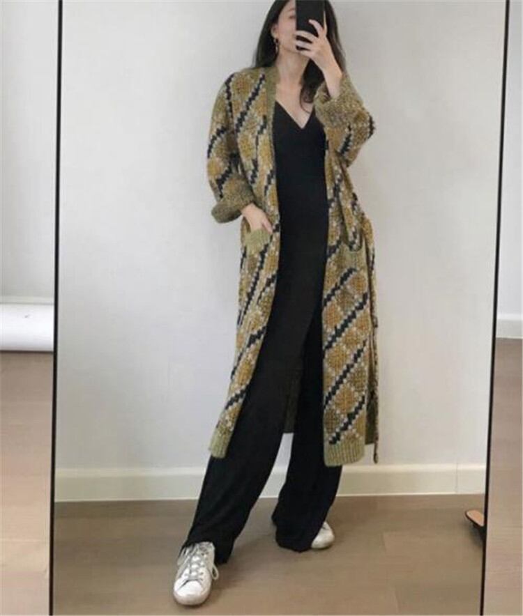 ニット カーディガン コート 2021年春秋新作 長袖 レトロ ひし形 ゆったりする