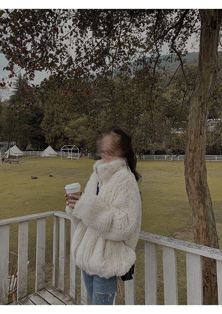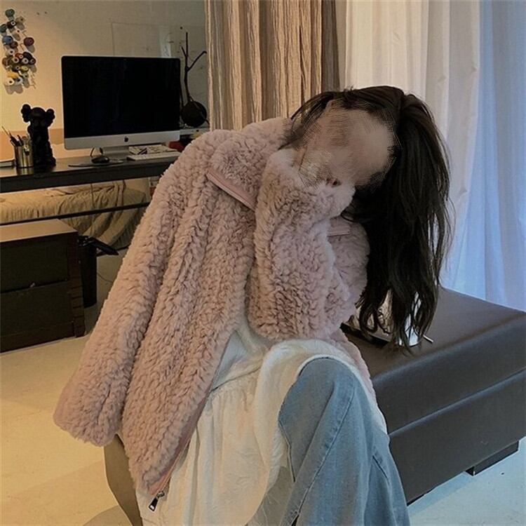 ◎【送料無料】高レビュー可愛い トップス 子羊の毛 裏起毛 スタンドカラー カジュアル フェイクファー コート