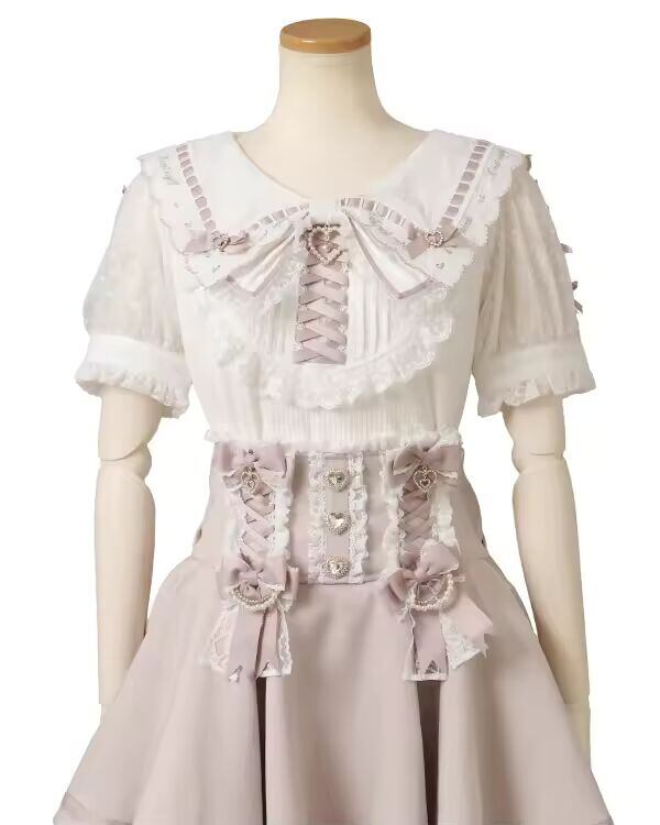 【送料無料◎】 日本リズシャツ鉱山ネイビー襟二層愛刺繍ブラウストップ夏の新しい甘い女の子かわいいトップショートスカート