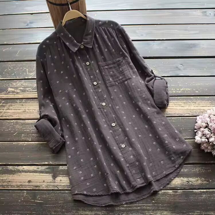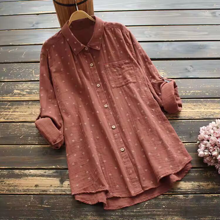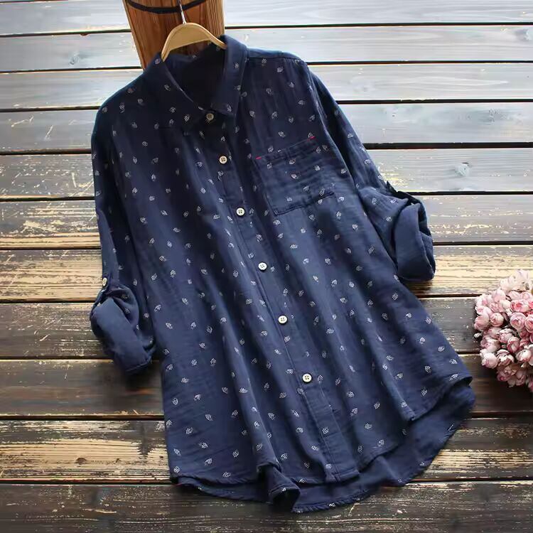 【送料無料◎】 8417新しい秋の女性ブラウス日本スタイル文学プリントターンダウン襟二層コットンシャツトップス女性