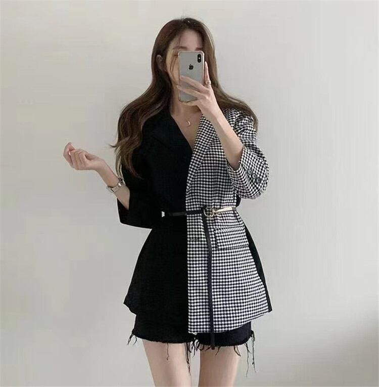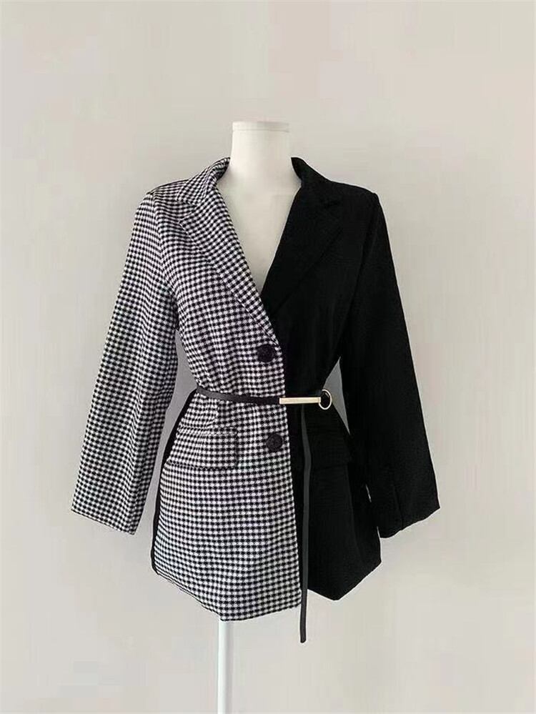 カラーマッチング スリム ブラック 縫付 千鳥格子 スーツ コート ヤングスタイル 大人気