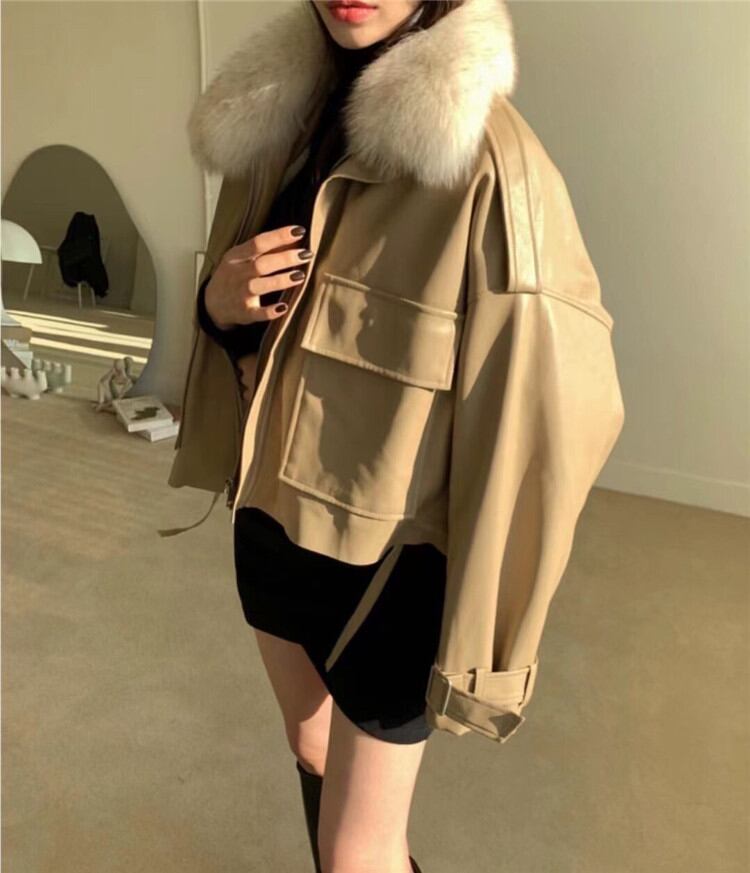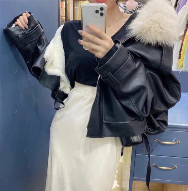 ◎【送料無料】限定数量セール タイドファッション レザー 裏起毛 ジャケット レディース 短いスタイル コート