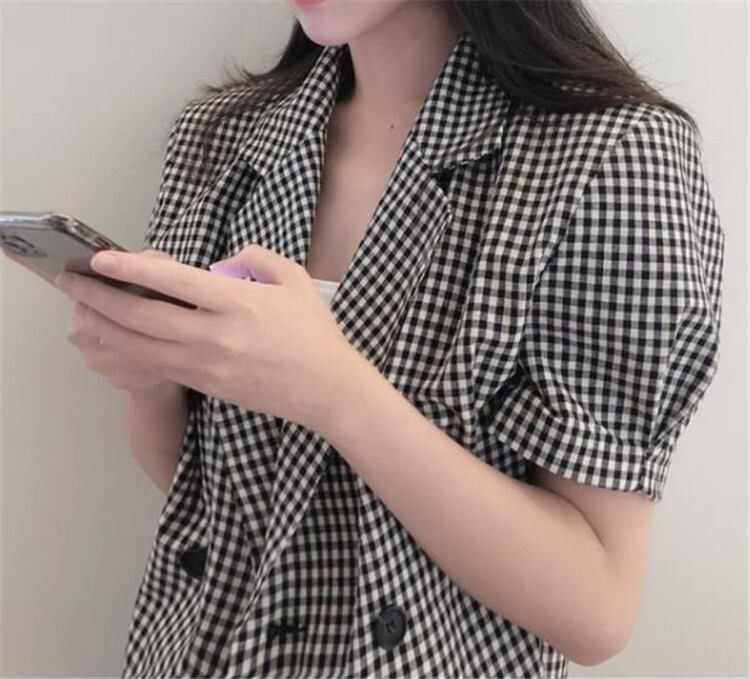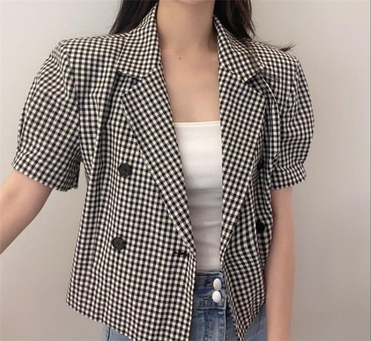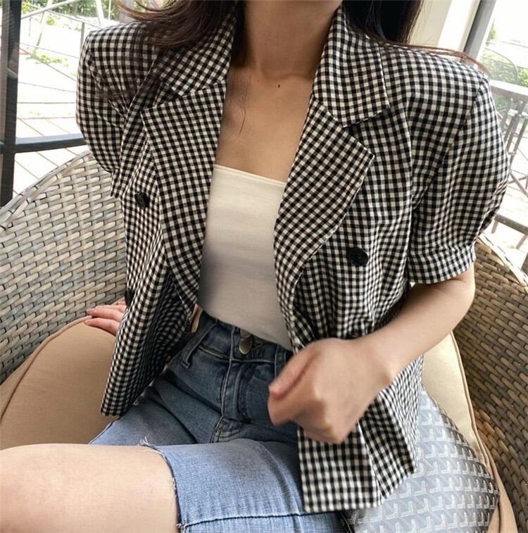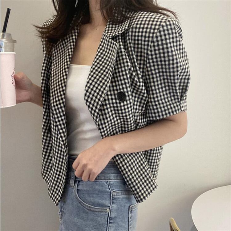 スリムフィット 百掛け コート スーツ ダブルボタン チェック柄 エレガント 半袖 快適である