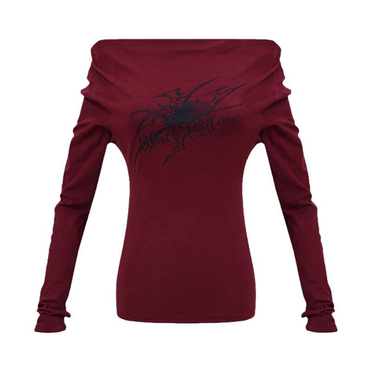 【送料無料◎】 ゴシックプリントグランジ Tシャツ女性長袖オフショルダートップス Y2K 服ストリートシャツ韓国スタイルヴィンテージクロップトップ